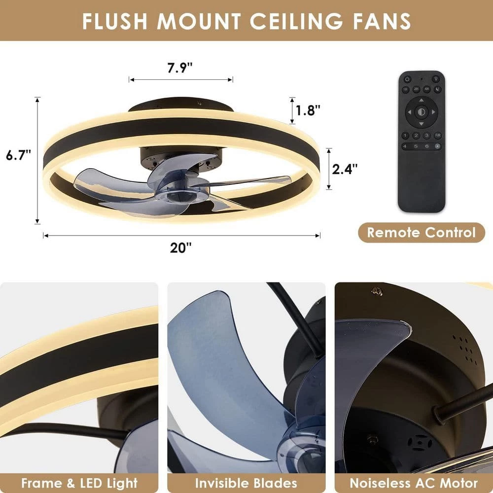 - Low profile ceiling fan lights with remote and smart APP control, all operations of ceiling fan and lights can be controlled with remote control and APP, Easily realize the convenience brought by smart life