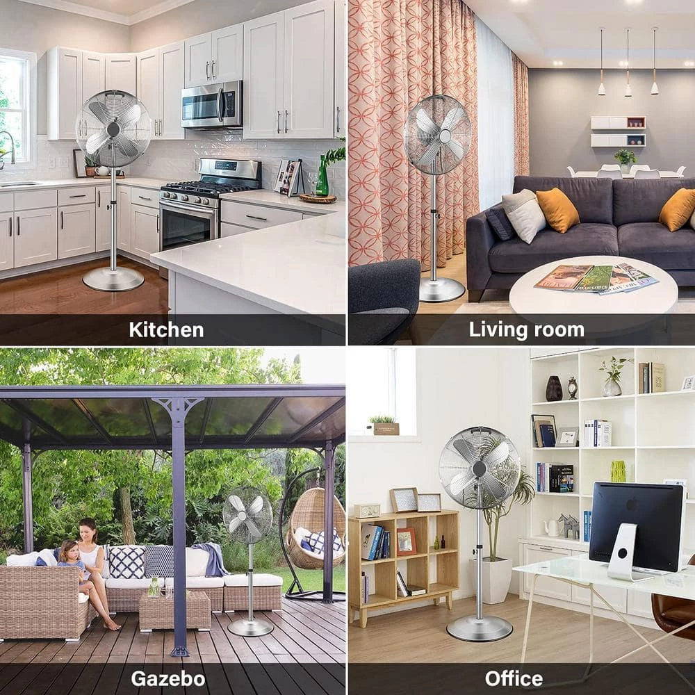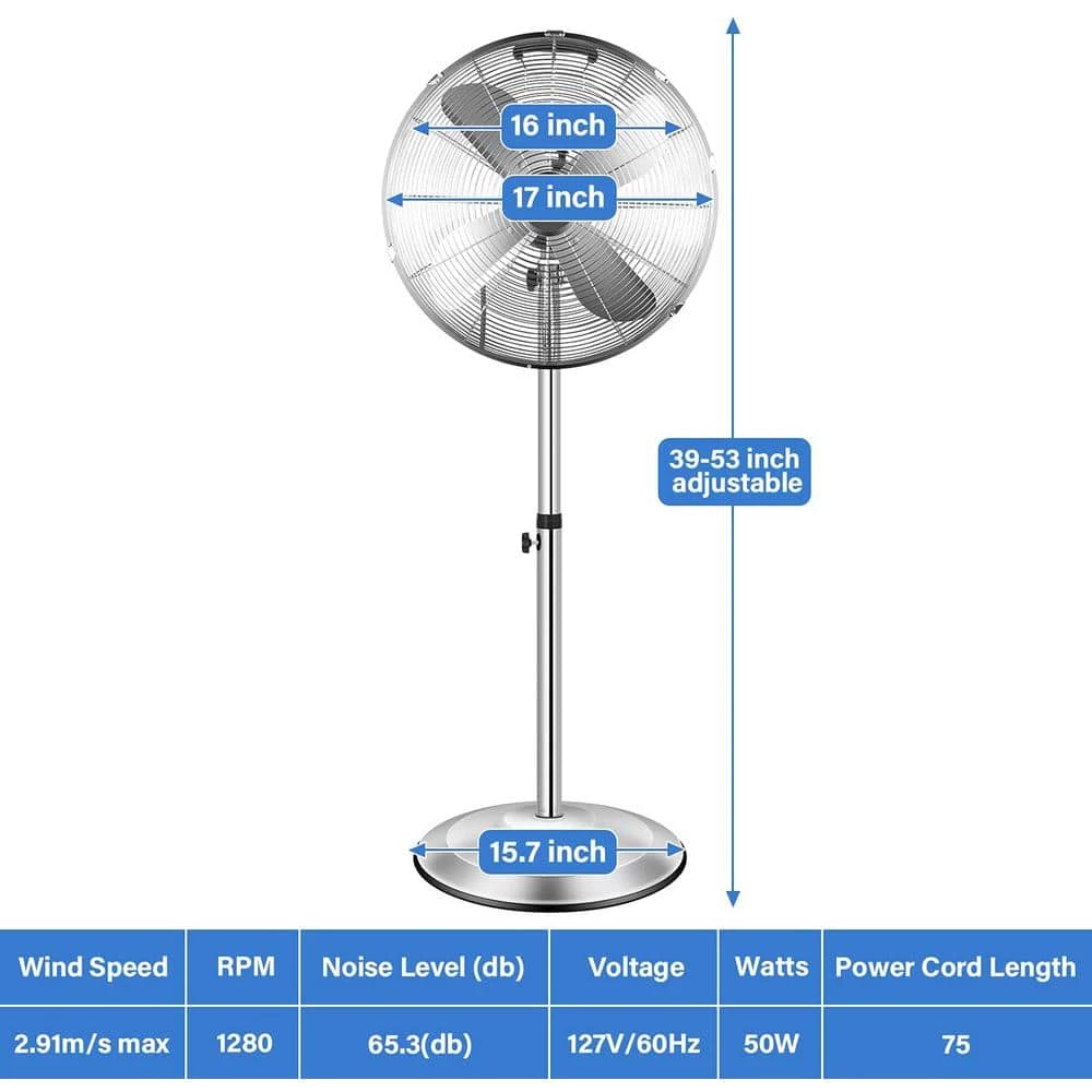 - 3 powerful speeds: this high-velocity fan features easy-to-switch speed by the rotary switches. 3 powerful speeds and aluminum blades create the maximum air velocity of 2100 CFM, the powerful wind will cool the space where it’s positioned
