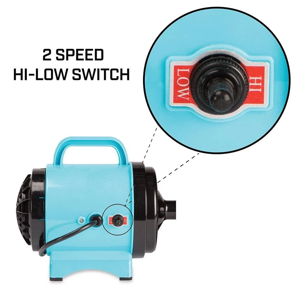 - No more towels and hair dryers; use what professional groomers use to dry dogs using high velocity wind with powerful air flow