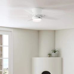 Hunter Newsome 42 in. Indoor Low Profile Fresh White Ceiling Fan With LED Light Kit and Remote