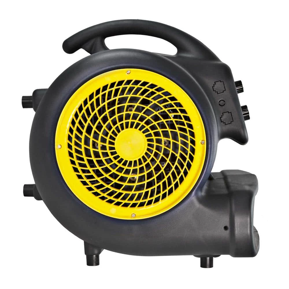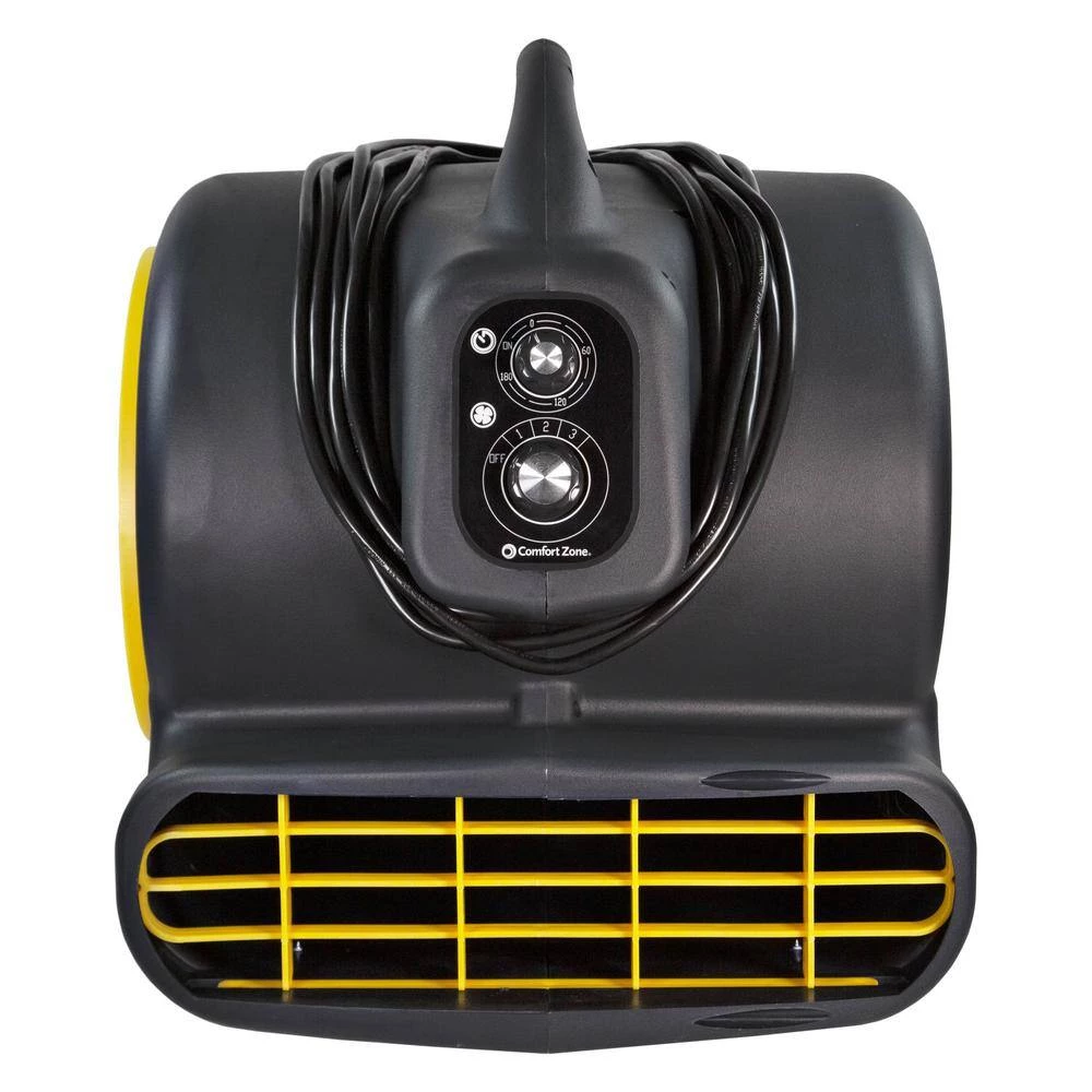 1/2 HP High Velocity Air Mover is a multipurpose floor fan perfect for drying out wet and damp spaces or providing general room air circulation. Perfect for residential and commercial use, this powerful air mover is ideal for use in crawl spaces, basements, attics or garages and contractor or service industry jobs, including construction, plumbing, painting, carpet cleaning and other janitorial services. It can help dry anything from floors with water damaged to carpet and floors that have just been cleaned to freshly painted spaces. with a convenient carry handle, this 1/2 horsepower air mover is easy to move around the room and features 3 air speeds with 3 adjustable angles helping to move and circulate air to dry your space quickly and efficiently. The Comfort Zone 1/2 HP high velocity air mover comes equipped with a timer function that can be set anywhere from 1 minute up to 3 hours. The timer function will count down the time and turn the air mover off automatically once set time is reached. It also comes with a wrap-around cord design and is stackable up to 4 high for easy, space saving storage.
