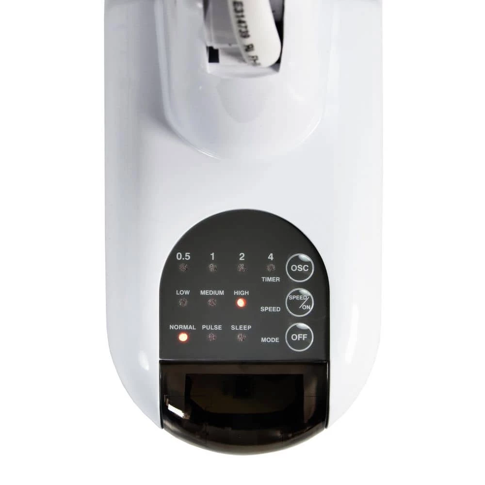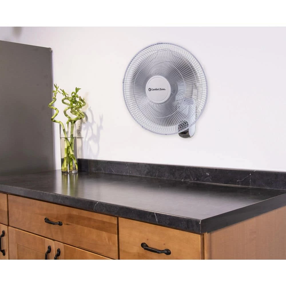 The 16 in. Oscillating Wall Fan by Comfort Zone is perfect for home or office. Control panel now available in gray, this wall fan is easy to program from the front panel or the full function remote control. It has 3-speed settings, natural and sleep modes, and a variable length timer. 90° oscillation and adjustable tilt for complete room coverage. Includes wall mounting brackets for easy assembly.