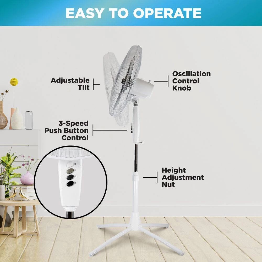 - Oscillating performance: the 3-speed pedestal fan boasts an oscillation function; it swings smoothly from side to side, allowing it to cool and boost air circulation over a wide area
