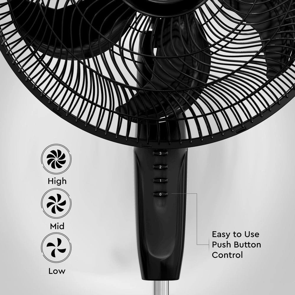- Stand up fan features a tri-curve grill cover, which helps reduce wind turbulence and brings down noise levels by up to 20%
