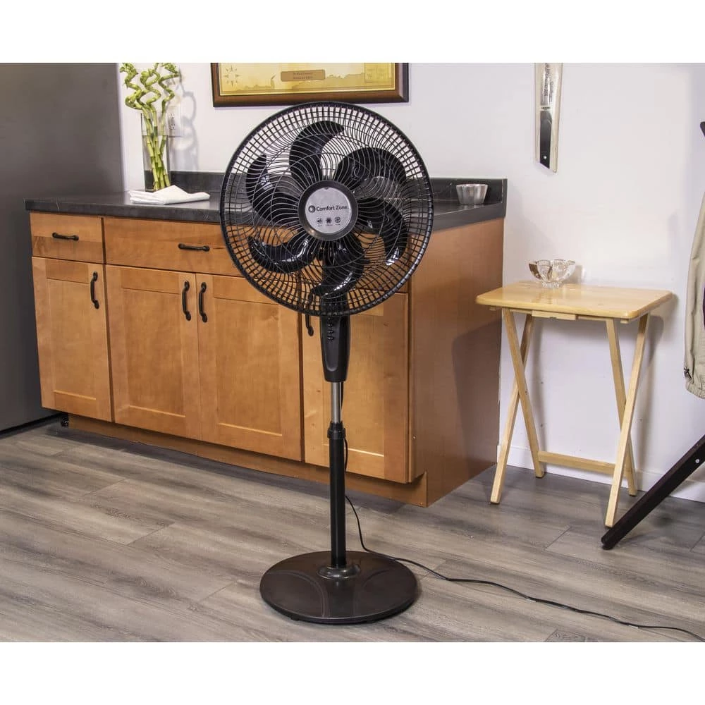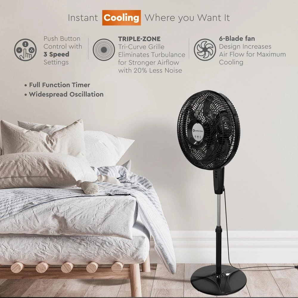 Looking for a stand fan that’s powerful yet doesn’t sound like a jet engine when in use. The summer sun is glaring angrily at your home, raising up indoor temperatures. You reach for your stand fan to cool down your surroundings. As soon as you turn it on, however, your ears are punished by the constant humming and buzzing from your fan’s motor. Effectively circulate the air in your home while keeping the peace. Choose a powerful stand fan that will freshen up your indoor air without causing a loud racket. Beat the summer heat with the Comfort Zone Powr Curve 18 in. Stand Fan. Enjoy stronger cooling effects with this 18 in. stand fan. It shows off 6 plastic blades, which moves more air and delivers up to 30% more air flow than traditional stand fans. The blades come alive with a powerful 90-Watt all-copper motor, blasting a powerful jet of air for keeping your living space well-ventilated. Use this stand fan without being bothered by loud buzzing or humming sounds. This stand fan features a Triple Zone tri-curve grill, which is designed to eliminate turbulence and lessen noise levels by up to 20%. Choose from 3 different speed settings on the fan’s control panel. Enjoy wider room coverage with its 180° adjustable tilt function.