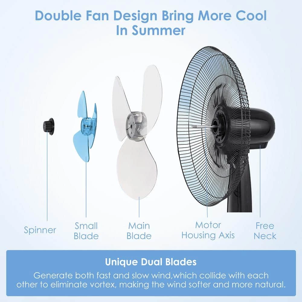 - Double blade more effective to produce a softer and more natural wind 3-speed wind adjustment allows you to choose the suitable speed according to your needs
