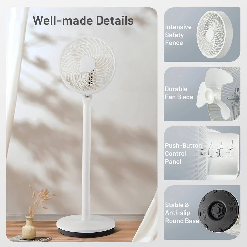 - Compact and portable floor fan: with a compact size of 9.5 in. D x 32 in. H, this pedestal fan is perfect for limited space and can be widely used in bedrooms, living rooms, kitchens, offices, etc. and thanks to the lightweight design, you can easily move the fan anywhere, the large round base with anti-slip pads provides added stability