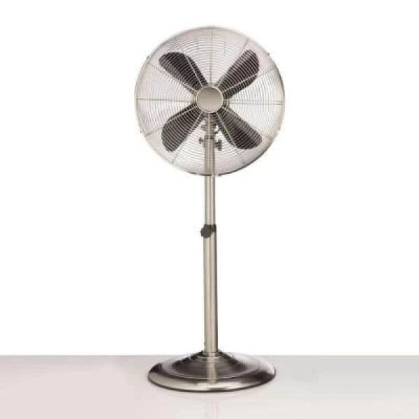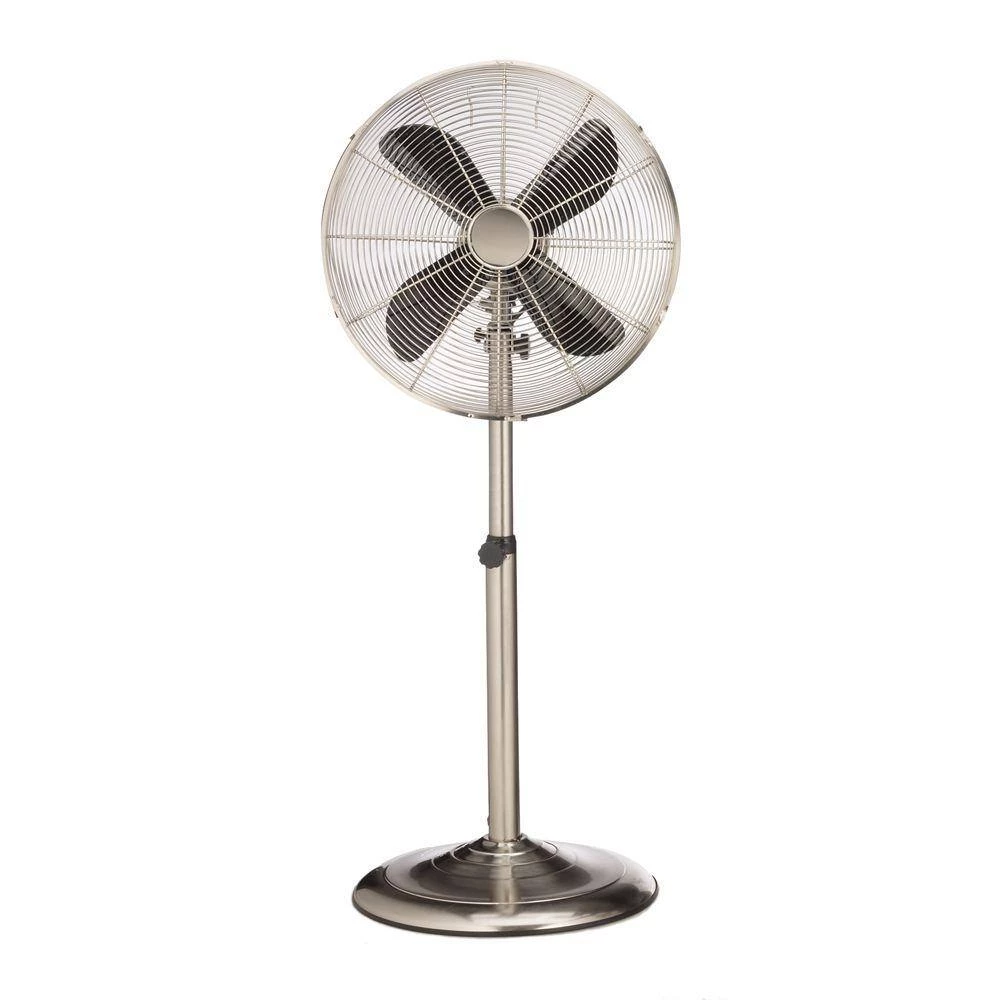 Deco Breeze goes “retro” with this sharp-looking height adjustable metal fan. Features include: 3 speeds and a 45 watt motor with both tilt and oscillation features. Low speed is 900 RPM; the medium speed is 1100 RPM; the high speed is 1280 RPM. Stainless Steel Finish.