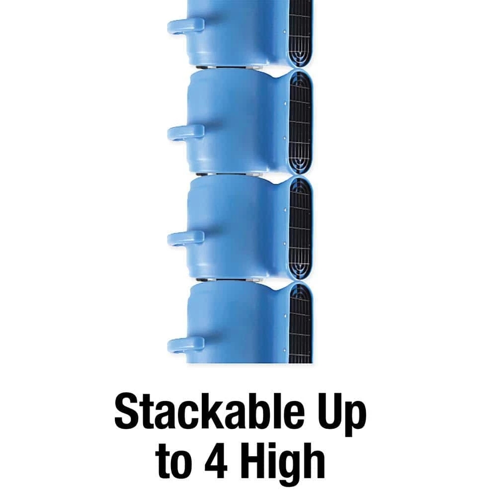 Compact in size, this three speed 1/2 HP air mover produces powerful airflow. Built with an onboard GFCI outlet, up to four units can be daisy chained to a single standard 15 Amp household circuit. Designed to be used in one of four different positions, horizontal, 15° with kickstand, 45°, and 90°, to direct airflow in the desired direction. Features an air outlet screen that keeps airflow free of debris and protects hands from getting caught in the powerful fan blades. Easily portable with a Convenient Grab-N-Go handle and wrap-around power cord design.
