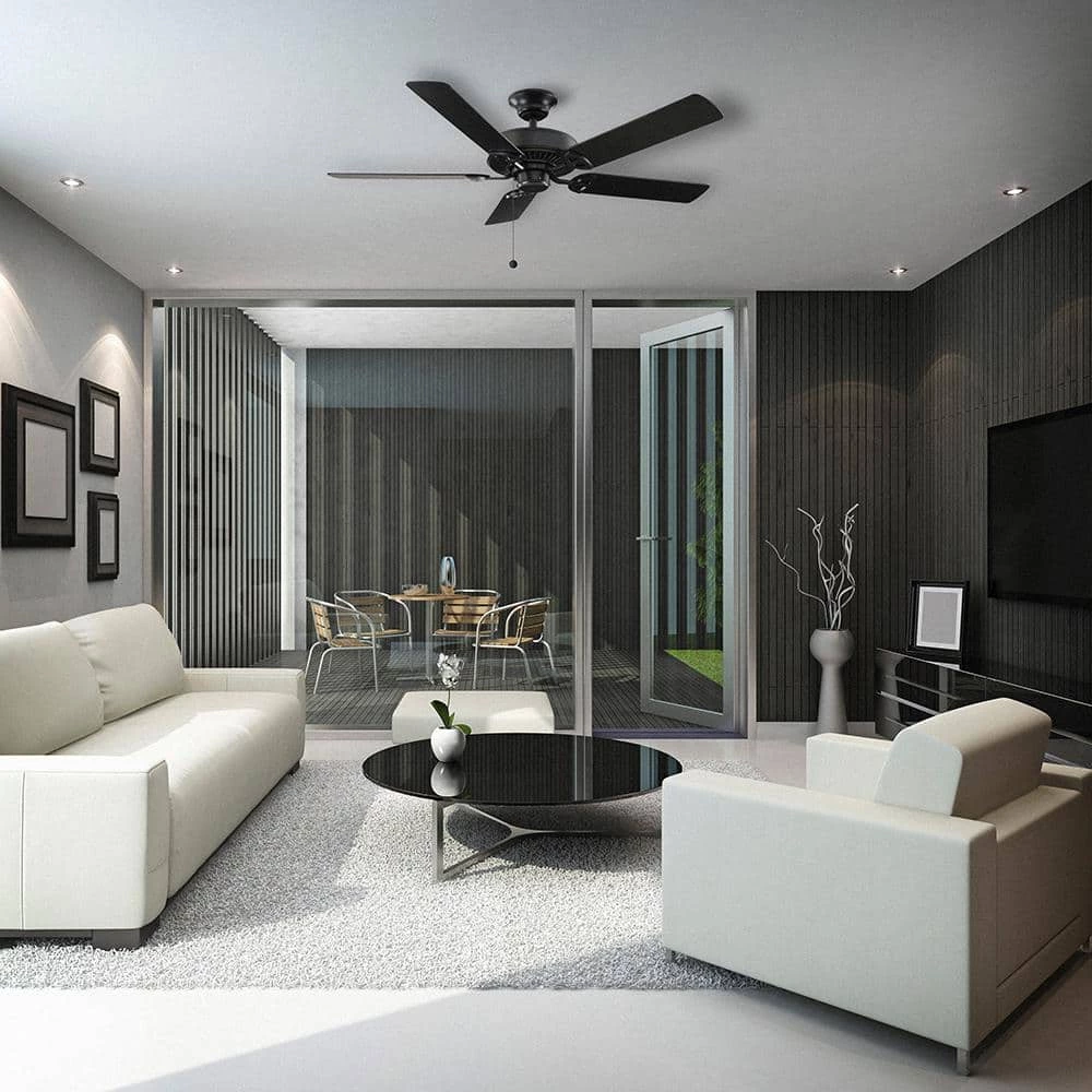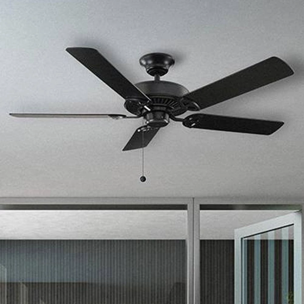 The Farmington 52 in. ceiling fan features a natural iron finish and five reversible matte black/walnut blades for a versatile look that complements a wide variety of decor styles. The 3-speed reversible control makes it easy for you to select the desired fan speed and direction, while the multi-capacitor ensures quiet operation. The Farmington fan is light kit adaptable and features AccuArm blade brackets for easy installation.