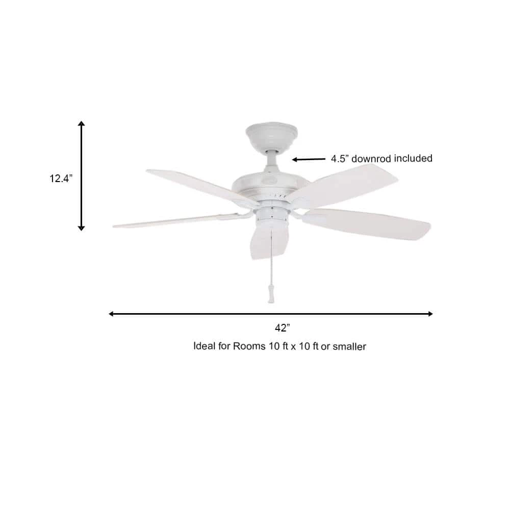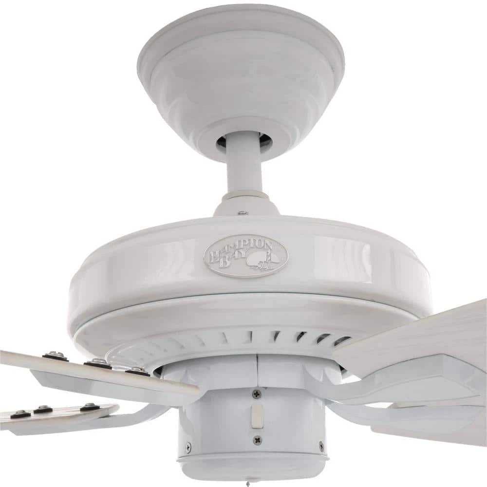 The Hampton Bay Gazebo II 42 in. White Ceiling Fan features five reversible, weather resistant blades in white and maple finishes adding style and comfort to your patio, deck, bathroom or closet. This fan offers three speeds and a reverse switch, so you can select the desired speed and direction of airflow. The Gazebo II can be adapted for use with a light kit and remote control. Ideal for small rooms, this fan offers quiet operation.