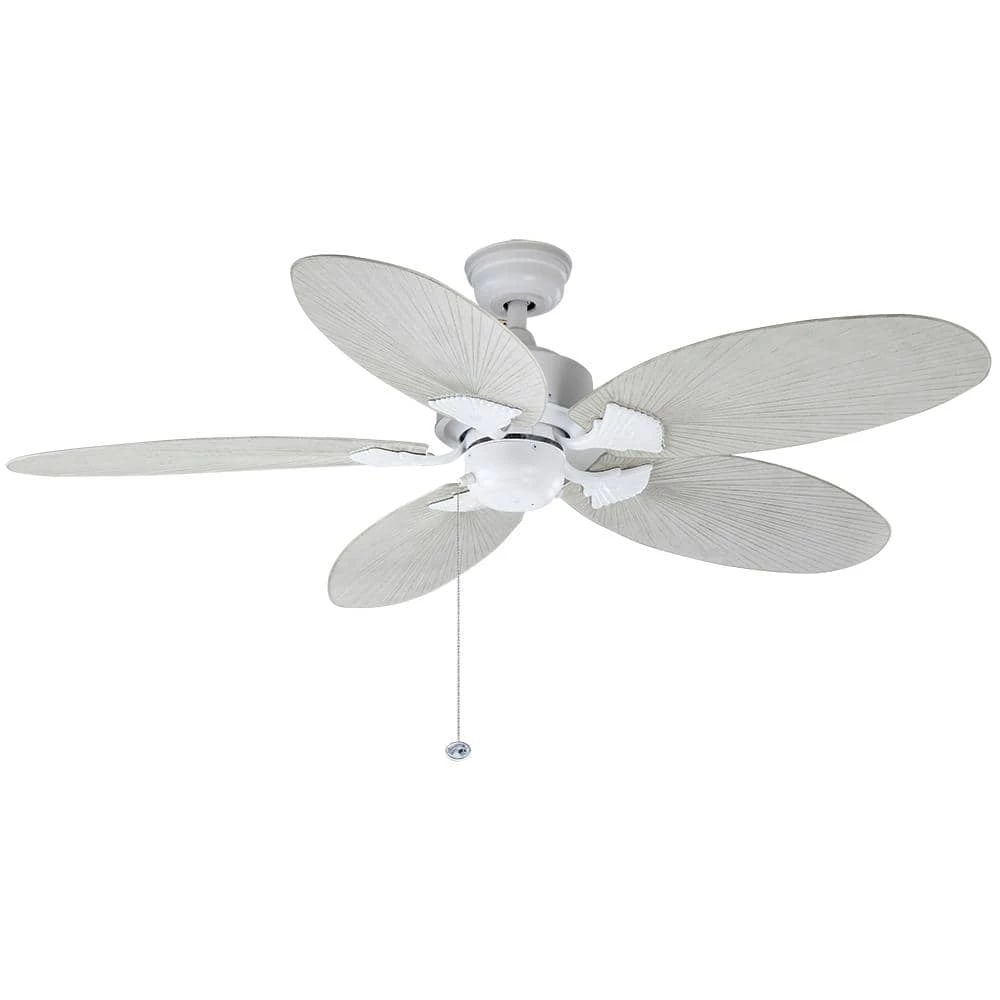 Make a room cooler with this Lillycrest 52-in. ceiling fan. For optimal airflow, it features a 3-speed reversible motor and a downrod. QuickFit installation with QuickInstall blades and mounting hardware make installation easy. A palm leaf-inspired design and distressed matte white blades produce a classic look.