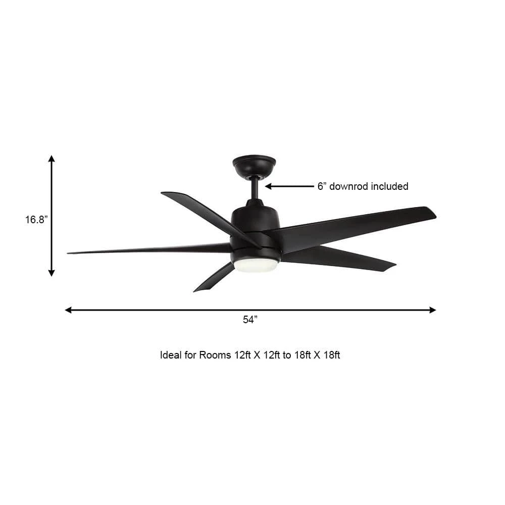 Add a touch of modern elegance to your living spaces with the 54 in. Mena ceiling fan by Hampton Bay. This versatile fan is damp rated, making it perfect for covered outdoor locations like porches and patios, and it looks great indoors as well. The powerful 21.5-Watt integrated LED light kit is dimmable and also allows you to choose between 3 different light temperature settings – warm white, soft white, or-daylight. Installation is a breeze with QuickFit installation features like a slide-on mounting bracket, magnetic light kit with pre-attached shade, and QuickInstall blades. The Mena fan is ENERGY STAR rated for increased energy cost savings.