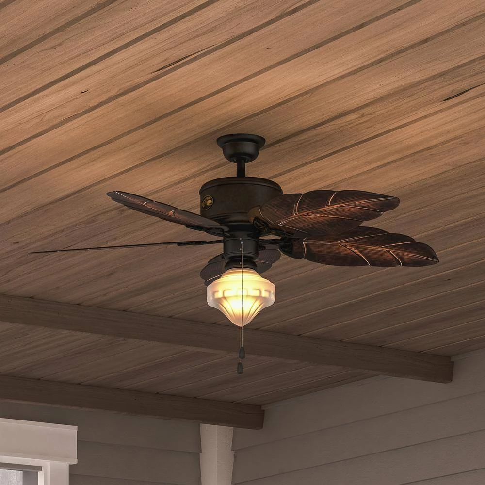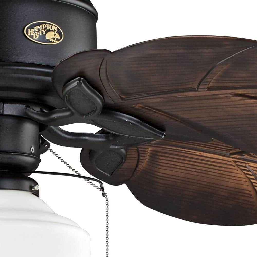 The Hampton Bay Nassau 52 in. Indoor/Outdoor Iron Finish Ceiling Fan sports a rustic finish with a vintage schoolhouse kit to provide optimal light output. The rust-free aluminum housing and outdoor-rated design provide lasting durability. A triple-capacitor speed control and PowerMax motor provide superior air movement and ease of control for hassle-free operation.