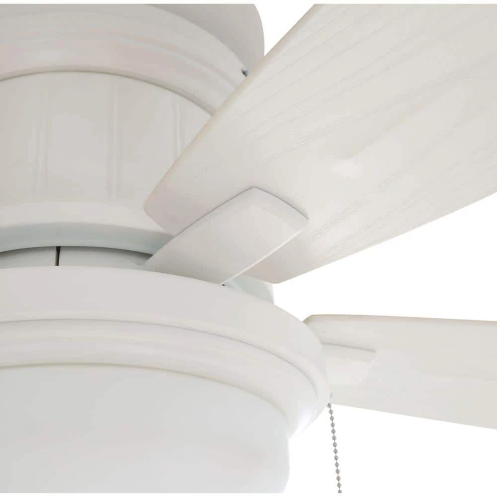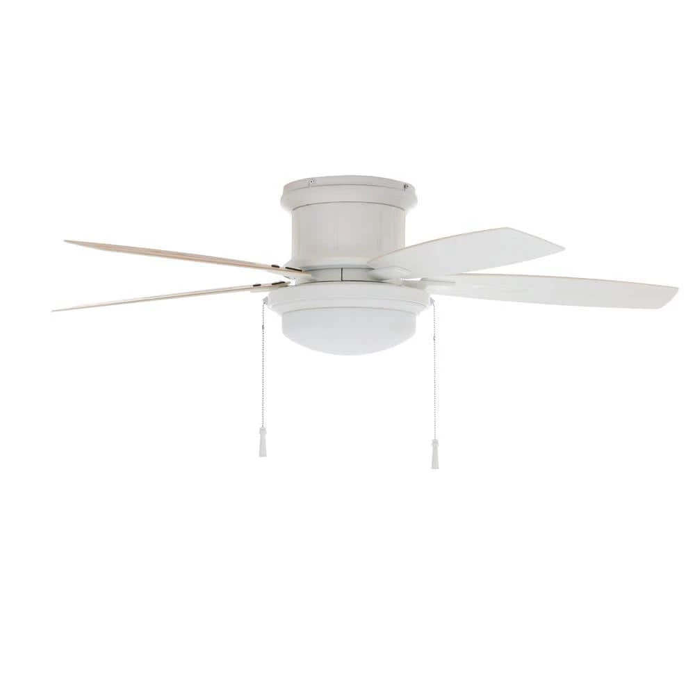Make an indoor or outdoor area cooler with this Hampton Bay Roanoke 48-in. ceiling fan. This wet-rated fan offers a low-profile design for flush mounting. To deliver maximum airflow, it includes a 3-speed reversible motor and blades set at a 13.5-degree pitch. The maple and white finish creates a charming look. For lighting options, it comes with a dome-style light kit, frosted opal glass and two 9.5W LED bulbs.
