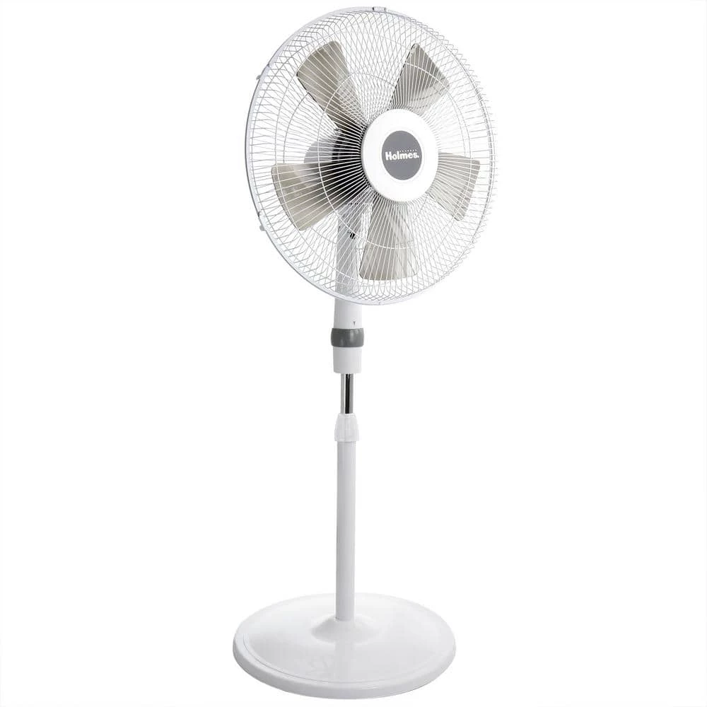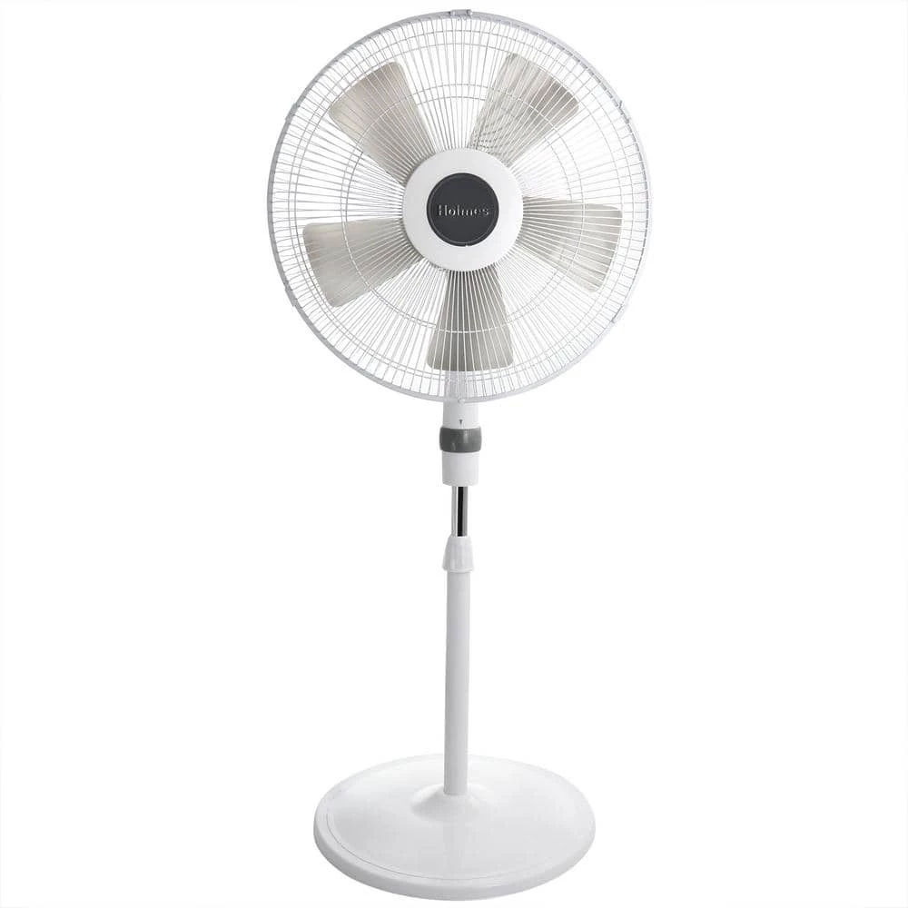 The Holmes Oscillating 16 in. blade stand fan is made with a motorized oscillation that delivers cooling airflow in large living areas. Tilt adjustable head and height with adjustable pole allows you to fine tune and target the direction of airflow to provide maximum cooling relief. Translucent 5 blade design to deliver powerful airflow with a translucent finish that blends into the home to make blades less visible. Wide angle oscillation delivers cooling in large areas. Easy assembly- no need for tools.