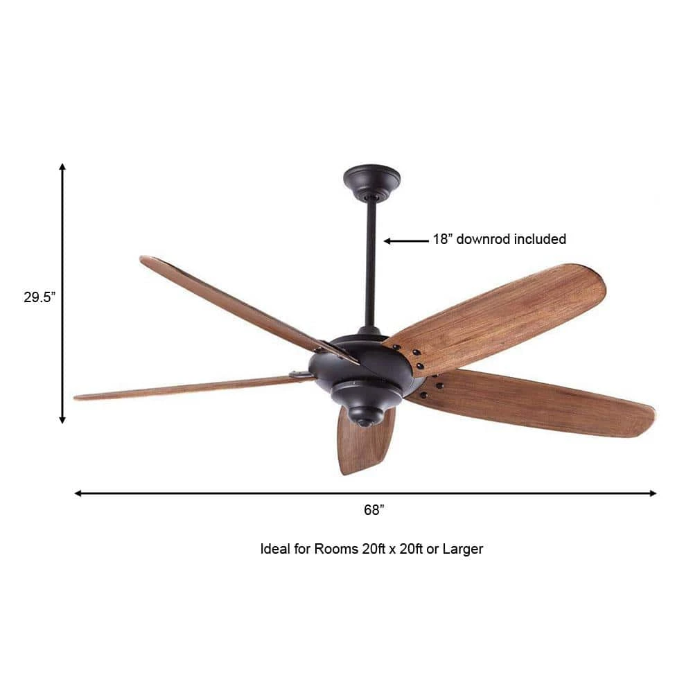 The Home Decorators Collection Altura 68 in. Ceiling Fan is beautifully composed of 5 hand-carved wooden blades to complement its versatile finish and contemporary styling. The Altura includes a handy, full-function 9-speed remote control. The remote will also control a light kit (optional, sold separately). The remote also features fan and light timer and a Comfort Breeze function that randomly varies fan speeds to simulate an organic breeze effect. A downrod, extra-long lead wires and concealed hardware are included for added value and convenience. The fan is ENERGY STAR rated for increased energy cost savings. DC motor fans are 70% more energy efficient than AC motor fans (when comparing efficiency (CFM/W) of DC vs AC motors in published FTC Energy Guides for ceiling fans).
