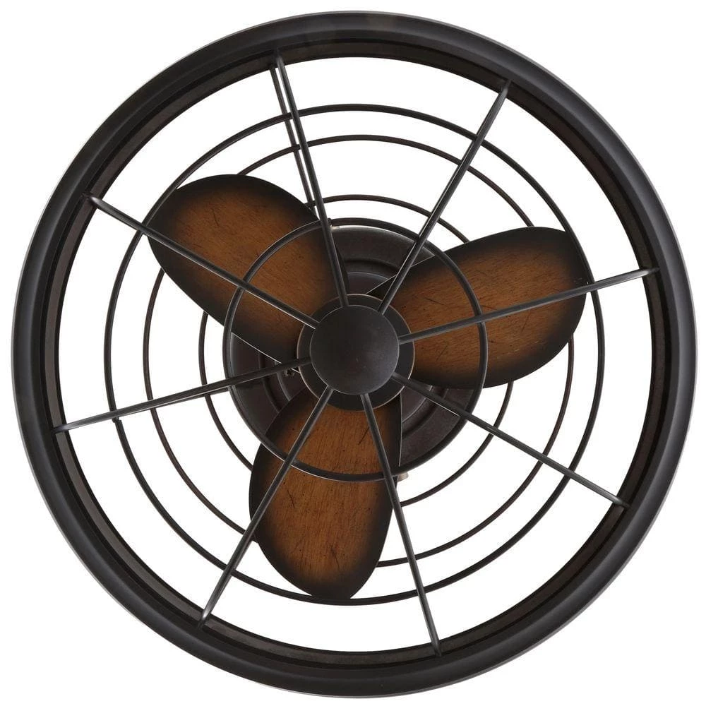 The Hampton Bay Bentley II Tarnished Bronze Ceiling fan has a caged fan design and is great when air circulation needs to be directed or if space is tight. It also has an oscillating feature that sways back and forth which creates a nice breeze. Operation is easy with its included wall control which can be installed in place of an existing wall switch. This fan is also rated for damp locations so it can be used under covered outdoor locations. Special note: The oscillating function can only be used if a 3-wire conducting cable has been installed in your existing wall switch to the ceiling junction box (a red wire inside your ceiling junction box is evidence of this connection).