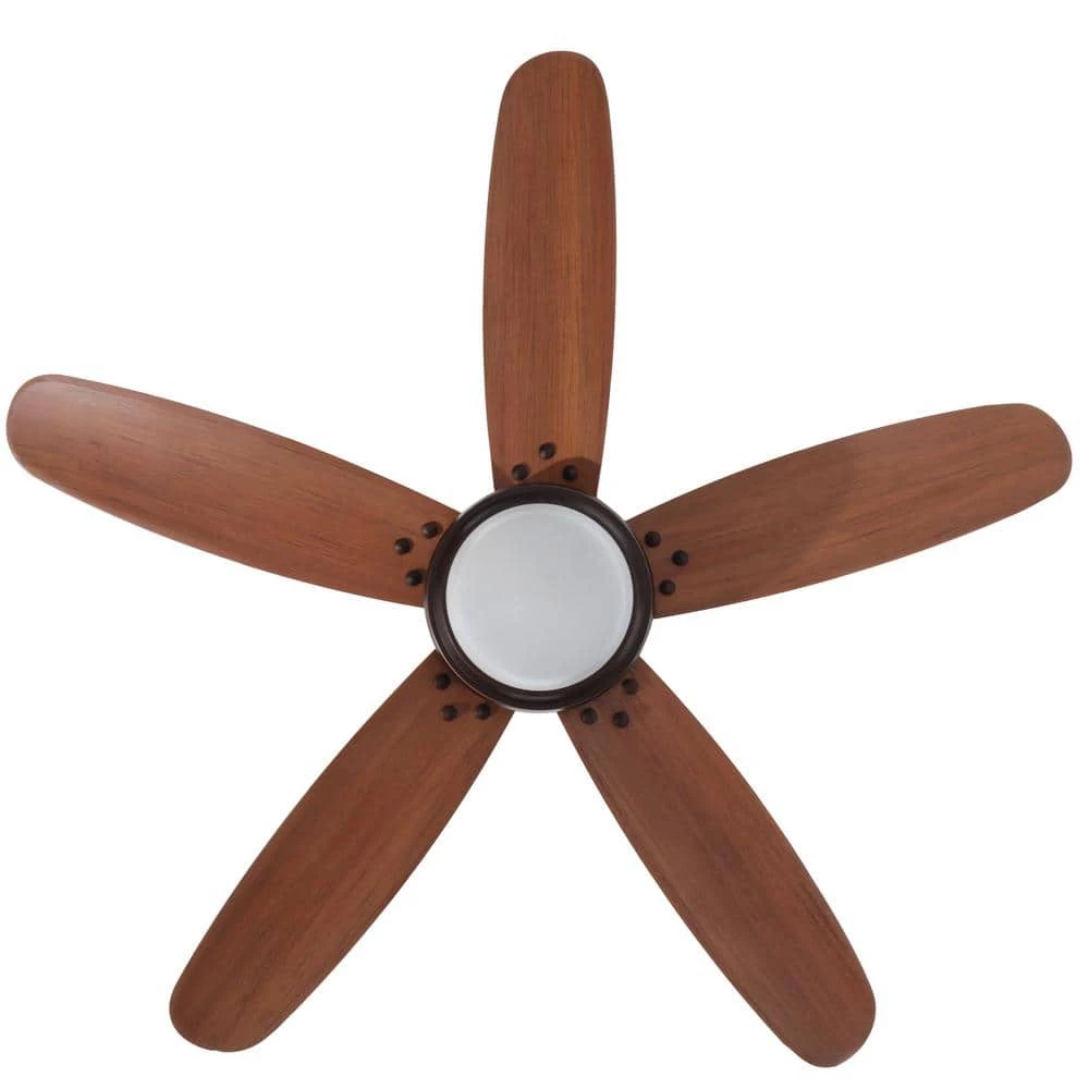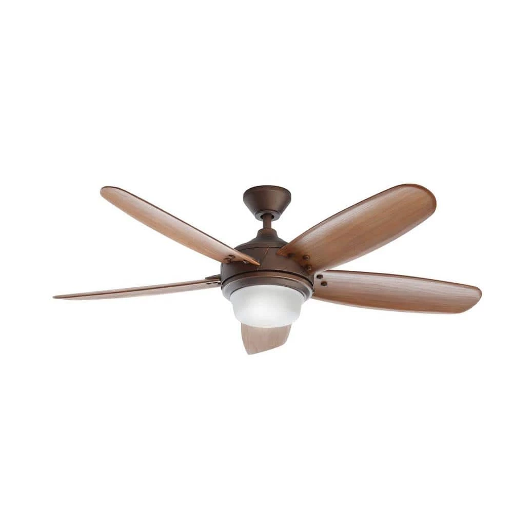 The Home Decorators Collection 56 in. Breezemore marries form and function in this beautifully designed ceiling fan. The hand-carved wood blades install easily in a flywheel design and the frosted bowl of the light kit simply twists into place to make installation a breeze. Included with this fan is a feature-rich remote control that controls the fan speed and lights as well as airflow direction. The remote also has a comfort breeze setting which will automatically vary the fan’s speeds at different intervals to create an organic breeze effect. Another convenient feature of the remote control is the timer function which allows the light and/or fan to be turned off at a predetermined setting. DC motor fans are 70% more energy efficient than AC motor fans (when comparing efficiency (CFM/W) of DC vs AC motors in published FTC Energy Guides for ceiling fans).