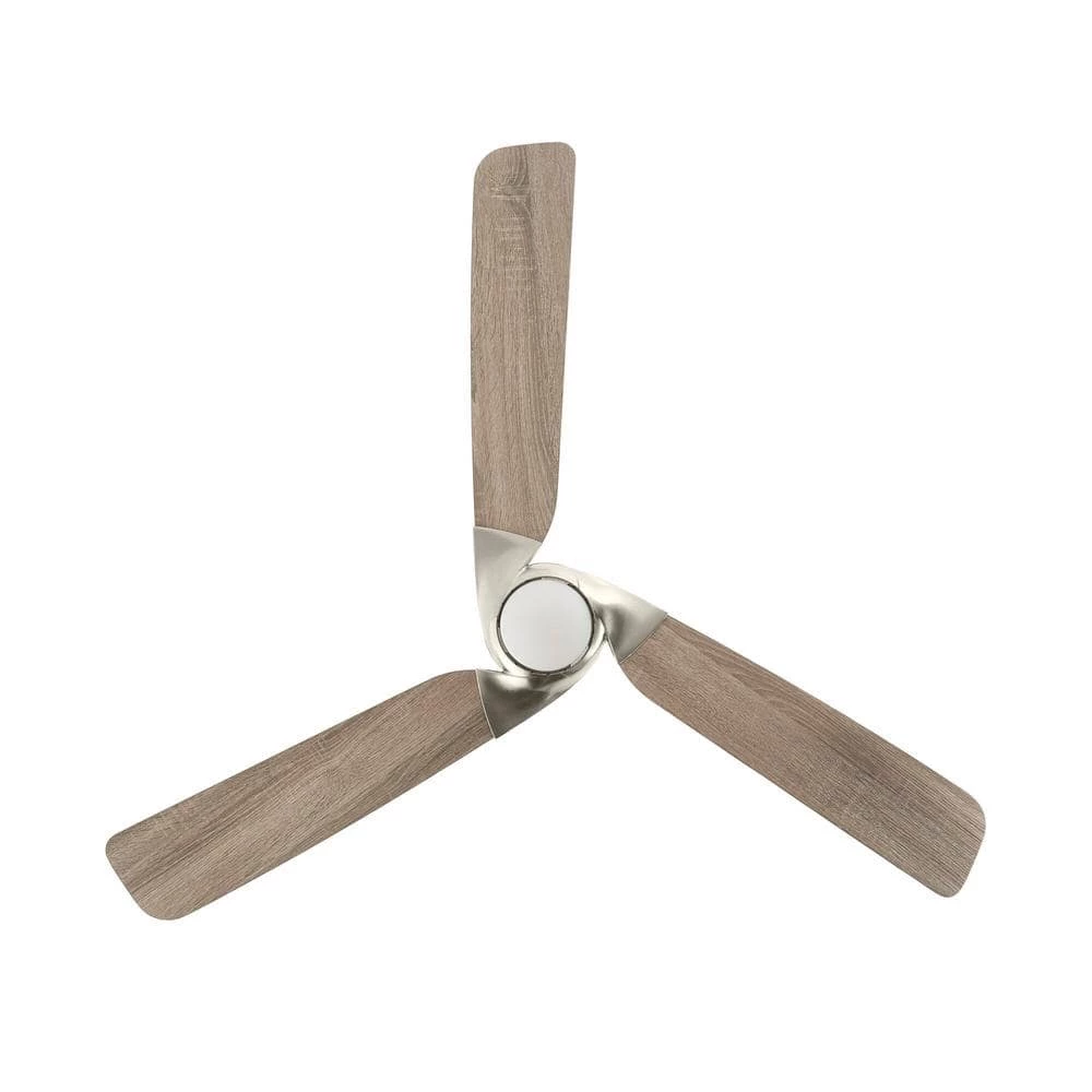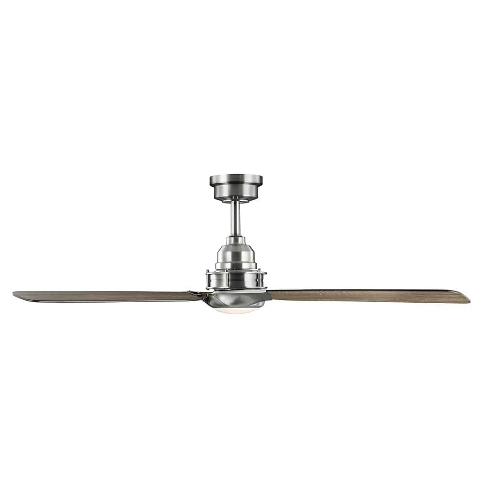 - Brushed nickel finish with 3 vintage aged pewter finish blades