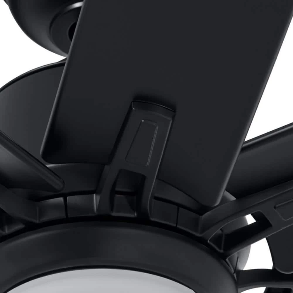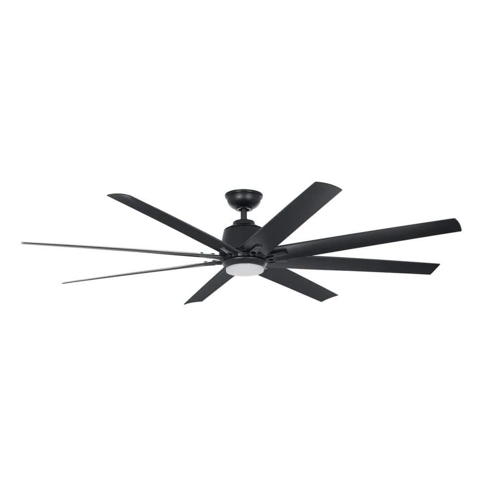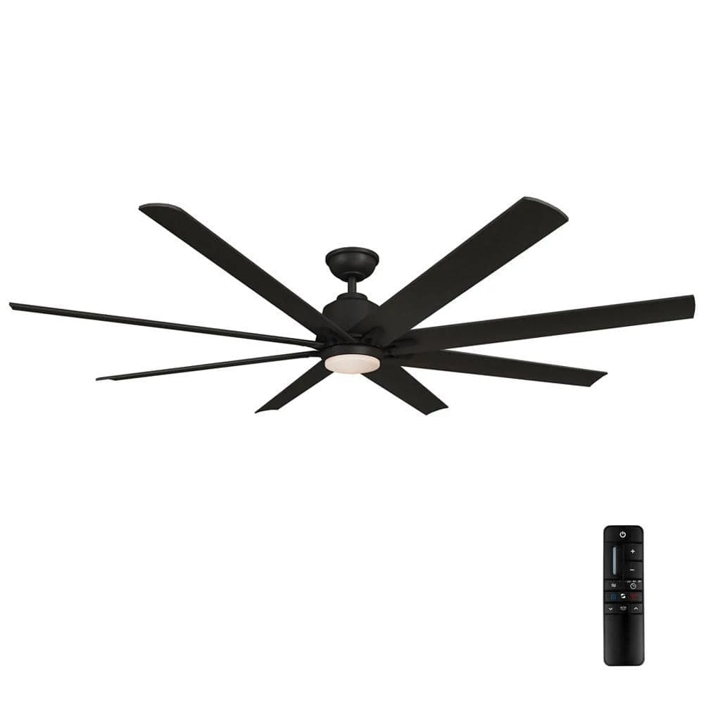 Transform any large room or loft in your home with the addition of this Kensgrove 72 in. ceiling fan. It features eight matte black blades, and a dome-style light kit with a frosted opal glass shade. The matte black blades are weather resistant, and this fan is rated for indoor or outdoor use. The LED light source produces a warm white light. Though mighty, the fan’s energy-efficient DC motor runs quietly. The DC motor has nine speeds, and the included remote controls the dimming and speed functions. DC motor fans are 70% more energy efficient than AC motor fans (when comparing efficiency (CFM/W) of DC vs AC motors in published FTC Energy Guides for ceiling fans).