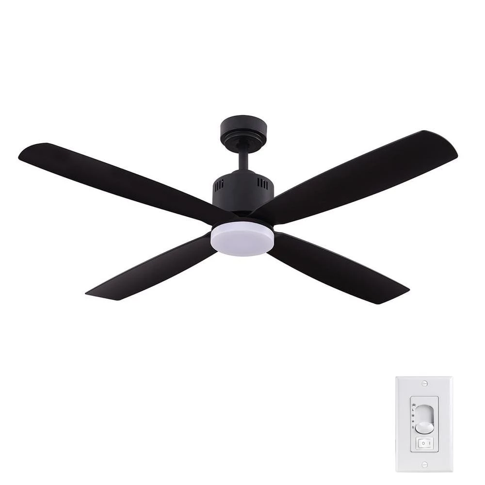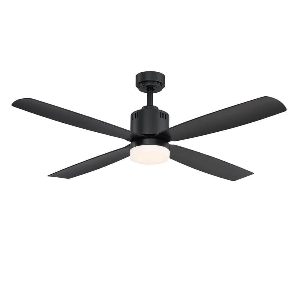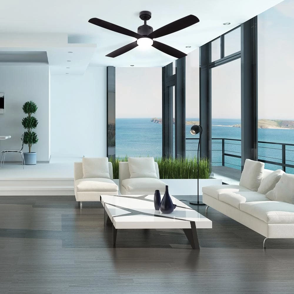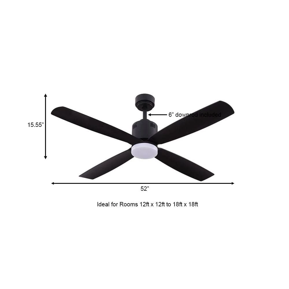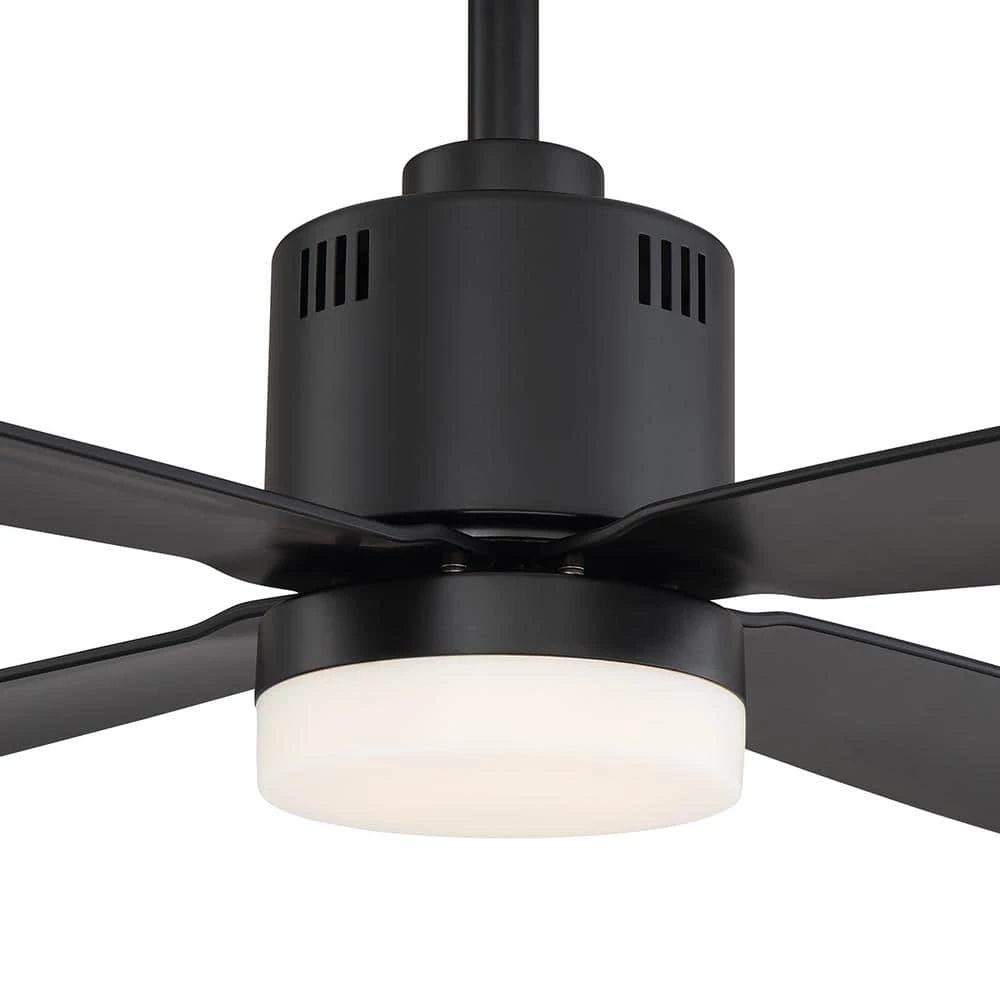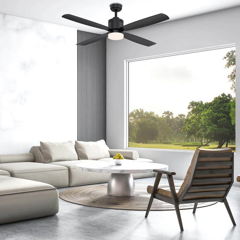 Add a modern touch to your space by installing this Kitteridge 52 in. LED Indoor Matte Black Ceiling Fan with Light Kit. The fan boasts black acrylonitrile butadiene styrene blades, wall switch control and integrated LED technology. Prepare to cool off your indoor space with this stylish fan featuring three mounting options, light kit compatibility and frosted glass. Style and functionality come together with this fan considering its 2,977 CFM airflow and modern style.