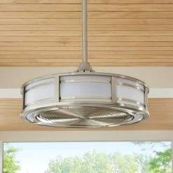 Stunning. Wow. Incredible. Just some of the comments you may hear when friends and family see your new 60 in. Makenna ceiling fan by Home Decorators Collection. This gorgeous windmill style fan features a powerful DC motor and 8 reversible blades to circulate air in great room spaces and covered outdoor locations like porches and patios. The fan’s stark matte black finish is complemented with a frosted glass light shade and reversible blades in distressed walnut and natural aged oak finishes to blend with many of today’s decor trends. The versatile integrated LED light is dimmable and allows you to choose between is different color temperature settings ranging from warm white (2700K) to daylight deluxe (6500K) to complement your homes lighting. Convenient operation is at your fingertips with the included remote that controls the fan’s 5 speeds, lighting options, and rotation direction. DC motor fans are 70% more energy efficient than AC motor fans (when comparing efficiency (CFM/W) of DC vs AC motors in published FTC Energy Guides for ceiling fans).