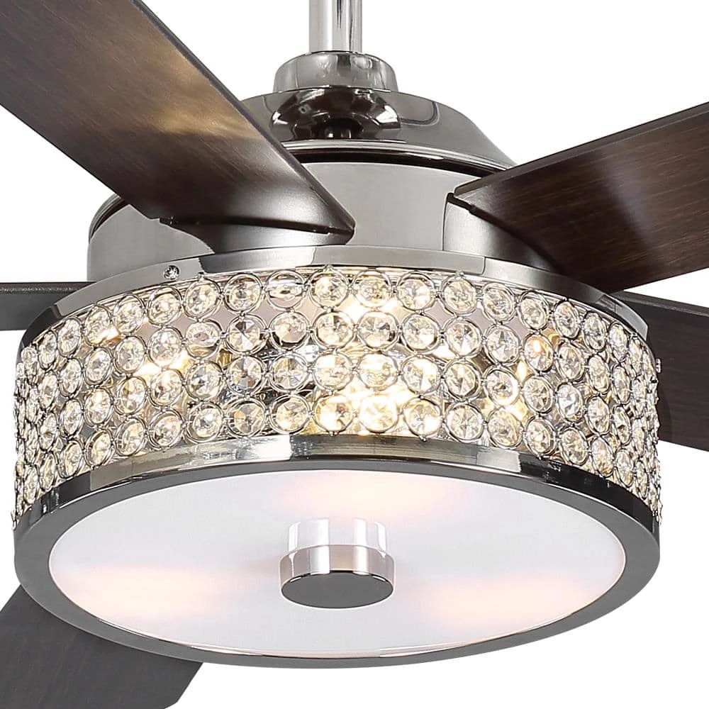 Make a room cooler with this Montclaire 52-in. ceiling fan. Great for living rooms and bedrooms, it comes with a 3-speed reversible motor for quiet operation and maximum airflow. Reversible blades in espresso and mid-century walnut create visual interest, and the polished nickel finish completes the charming look. For lighting control, it includes a crystal-style light kit.