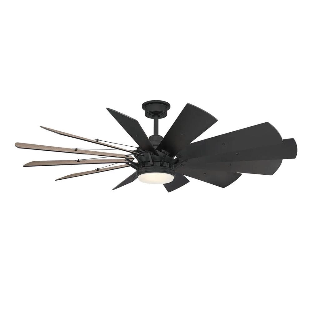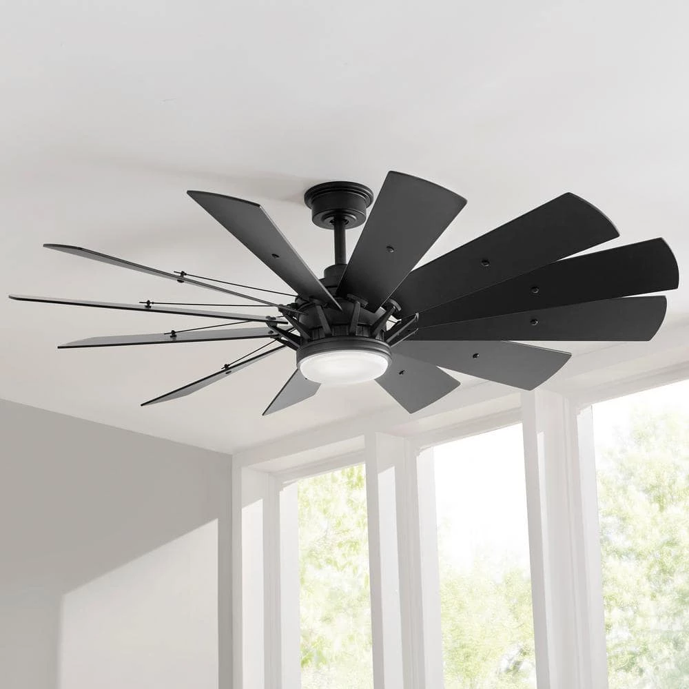 Cool down any room with the Trudeau 60 in. LED Matte Black Ceiling Fan from the Home Decorators Collection. This ceiling fan features a frosted glass dome light and reversible matte black/warm gray oak blades that complement traditional and modern decors. It’s easy to get the perfect settings with the remote, which also controls the light timer, dimmer, fan reverse and comfort breeze functions. The light uses a 20-W LED bulb (included). DC motor fans are 70% more energy efficient than AC motor fans (when comparing efficiency (CFM/W) of DC vs AC motors in published FTC Energy Guides for ceiling fans).