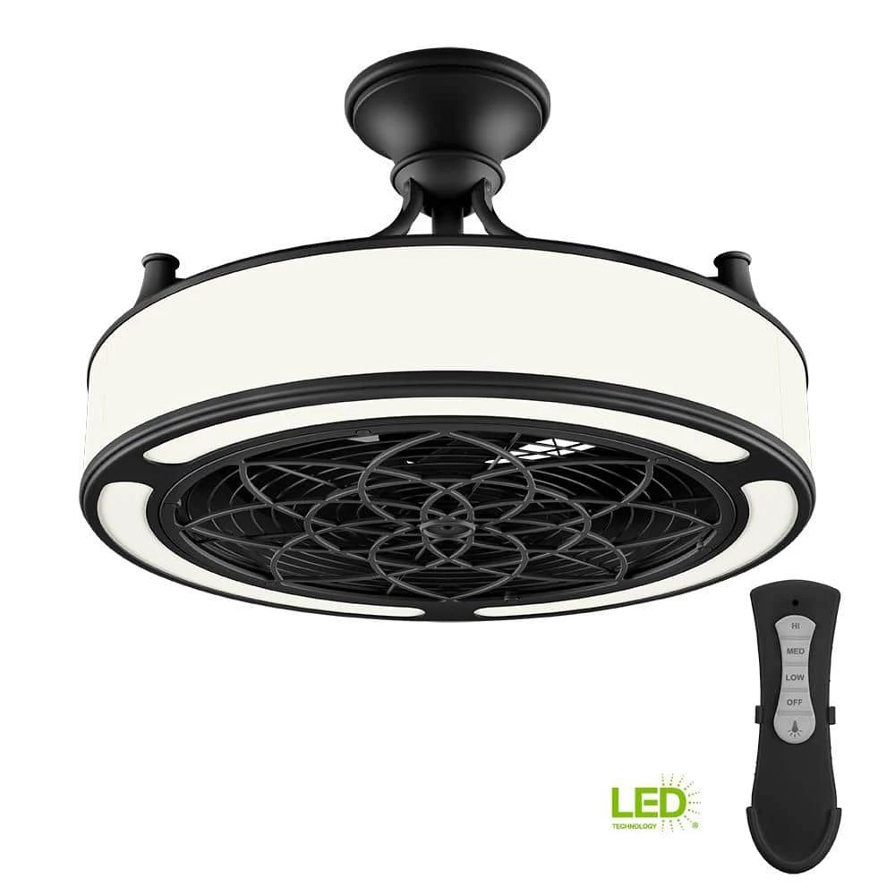 Make a room cooler with this Windara 22-in. LED ceiling fan. Great for small rooms, it includes three reversible metal blades. Three speeds allow maximum airflow in indoor or covered outdoor spaces. For quiet operation, it offers a high-performance motor. A black finish completes the modern look.