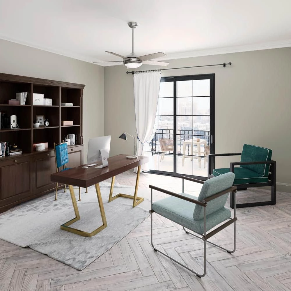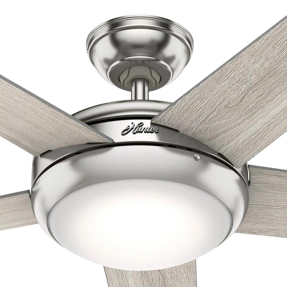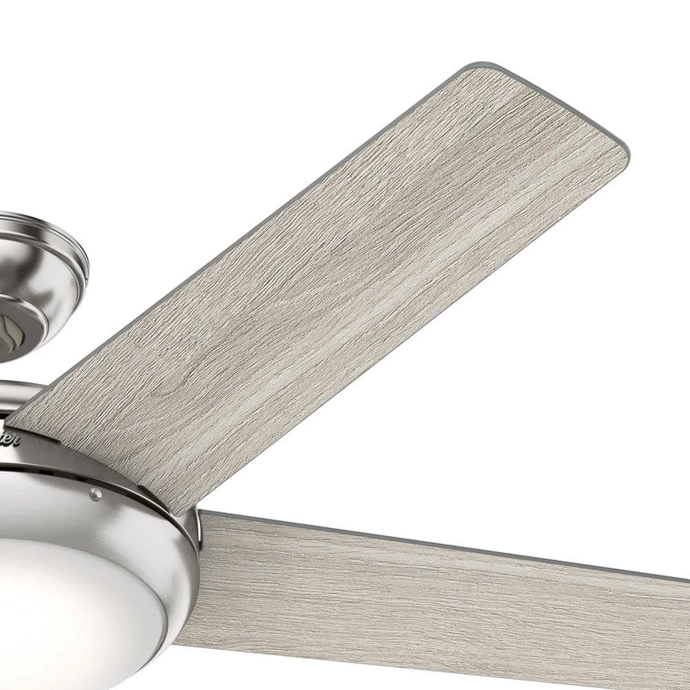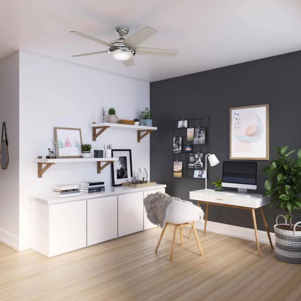 The Barton modern ceiling fan with light features Hunter’s exclusive SureSpeed Guarantee, delivering optimized, high-speed cooling. Use the included handheld remote to easily adjust the fan speed and dimmable LED light bulbs from anywhere in the room. This indoor ceiling fan features soft lines and classic finishes for a casual aesthetic that plays with a variety of styles from Mid-Century Modern to Bohemian. With a 52 in. blade span, this large ceiling fan is a great fit in living rooms, bedrooms, home offices, and bonus rooms.