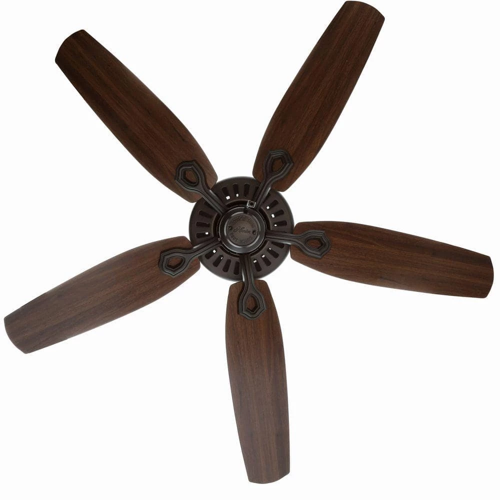 The 52 in. Builder Elite ceiling fan keeps your home cooler while adding an element of sophisticated style. This Hunter fan features three reversible Brazilian Cherry/ Harvest Mahogany blades and a New Bronze finish that easily coordinates with many decor styles. The reversible motor helps to cool you in the summer and circulate heat in the winter. With an rating and a WhisperWind motor, this fan provides powerful, yet quite cooling.