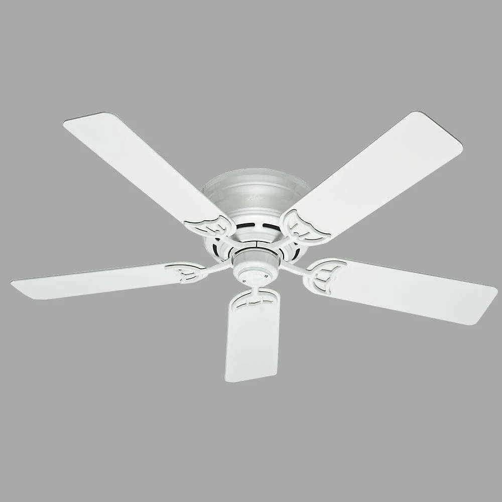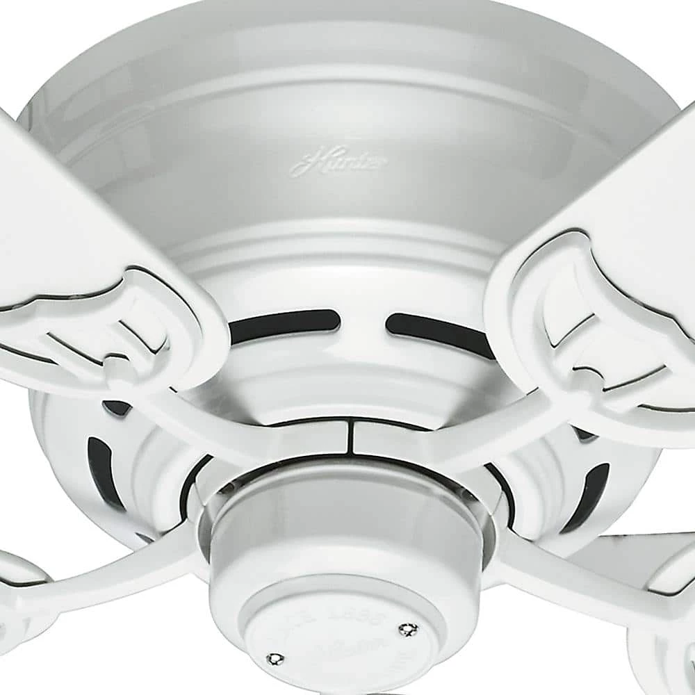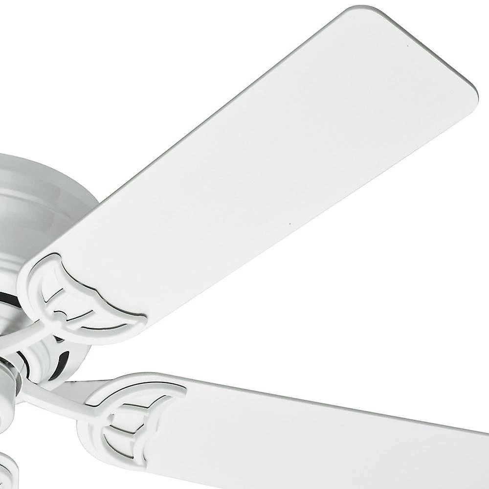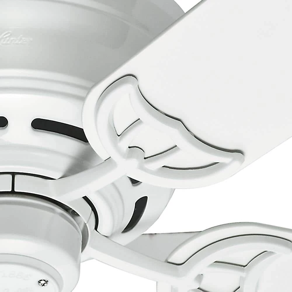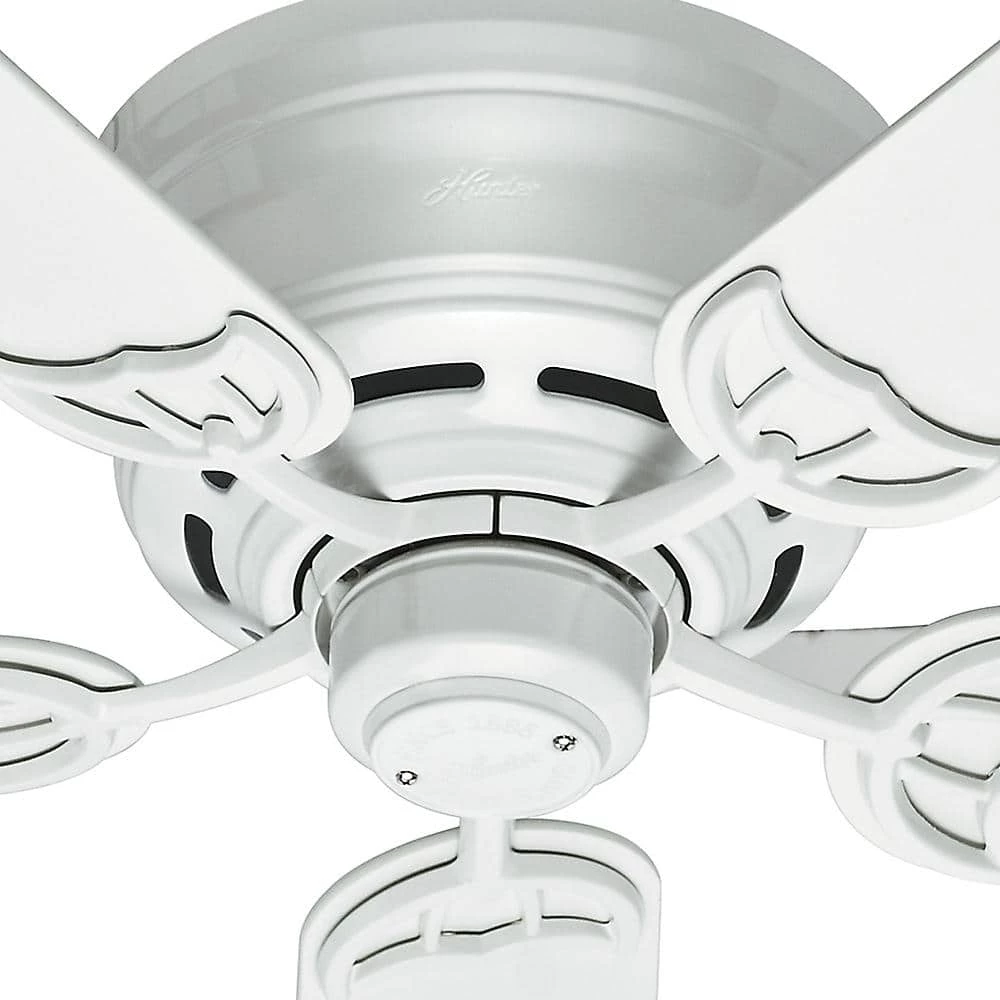 Powerful and whisper-quiet, the Hunter Low Profile III 52 in. Indoor White Ceiling Fan cools your room in style. This ceiling fan has simple lines, 5 white blades and is designed for low ceiling applications. The pull chain makes it a breeze to adjust the fan’s speed and turn it on and off.