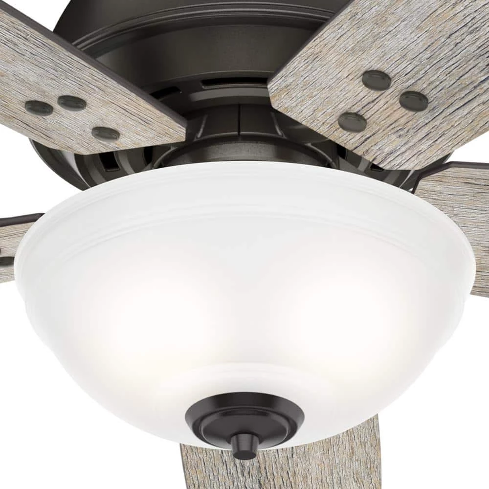 Featuring high-end finishes and a hint of the old west, the Reveille rustic ceiling fan is the perfect accent for your western home decor style. This fan offers an option to install with or without the light kit which includes dimmable, energy-efficient LED bulbs that provide the perfect amount of light through cased white glass. Ideal for your large, open concept living room, the Reveille’s 60-inch blades power a reversible, three-speed WhisperWind motor to deliver ultra-powerful air movement with a whisper-quiet performance so you get the cooling power you want without the noise.