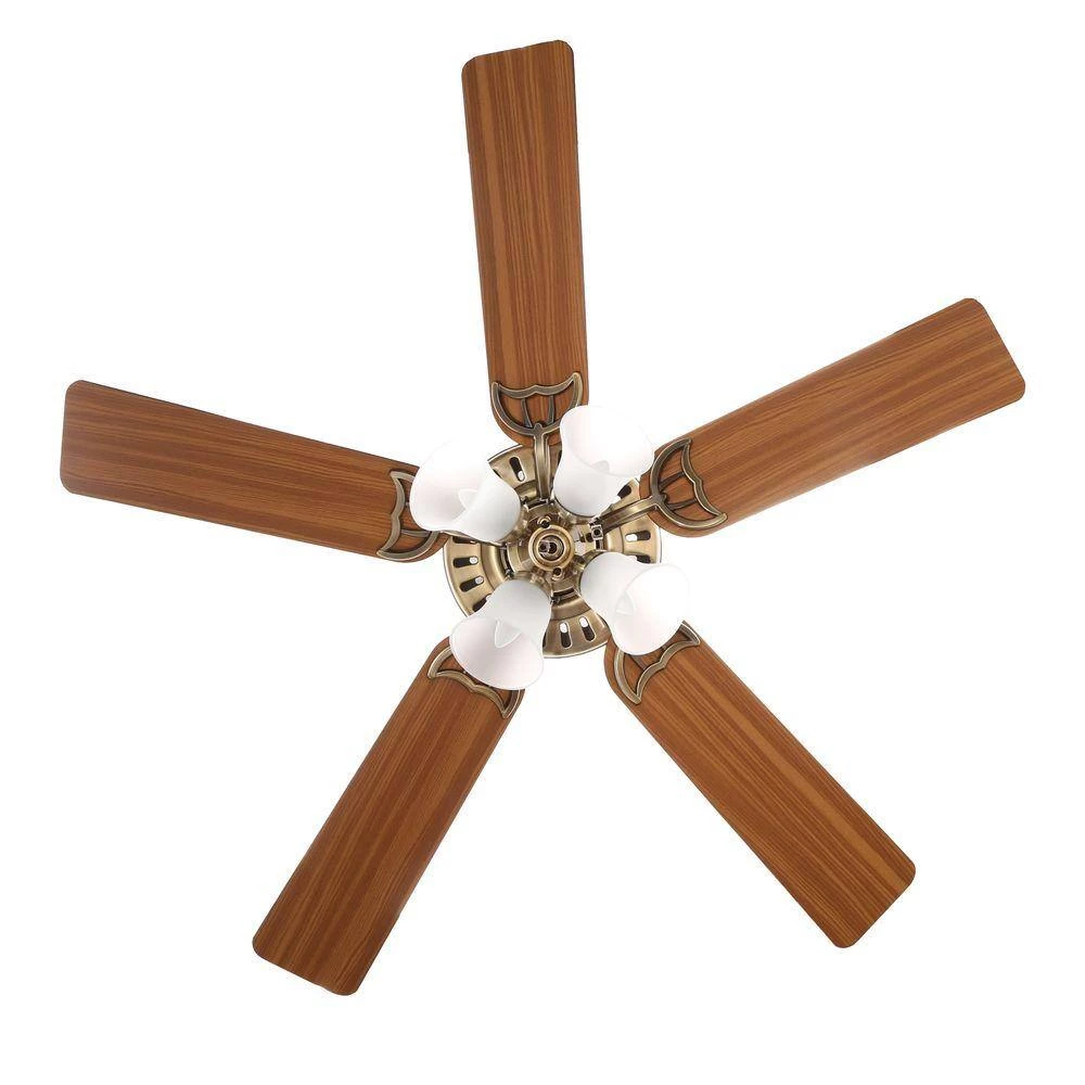 - FLIP THE BLADE: This fan features 5 reversible Walnut and Medium Oak blades to help match your room’s design