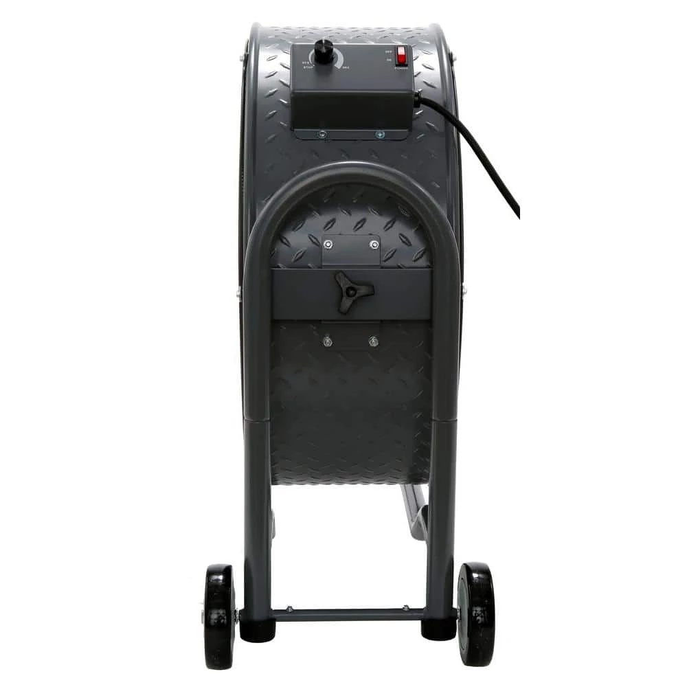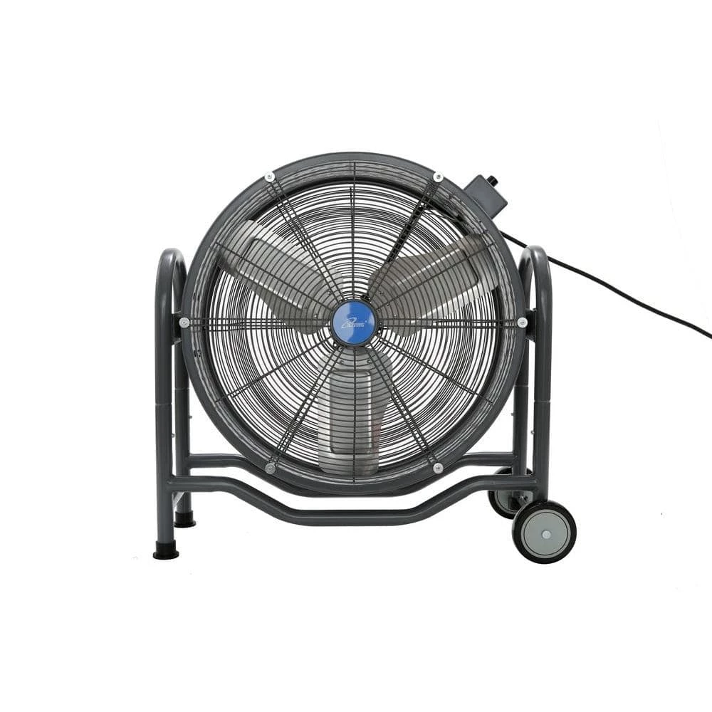This iLIVING 24 in. (61 cm) BLDC mobile fan is designed to move large volumes of air; ideal for offices, factories, warehouses, loading docks and auto shops. Its brushless DC electric motor has a fan speed that ranges from 10 CFM to 5800 CFM, allowing you to adjust the air circulation to your desired power, while still being cost and energy efficient, using only 210-Watt at maximum speed. This fan has a 3-blade aluminum propeller with a built-in 360° rotation feature. The fan housing is constructed of heavy-duty steel with powder-coated wire guards in compliance with U.S. OSHA Standard 1910.212, 1/2 in. opening requirements. BLDC motor runs at continuous variable speeds. Specs- 115-Volt, 60 Hz, 210-Watt, Phase 1, LOW speed of 10 CFM and HIGH speed of 5800 CFM, Air Velocity (FPM) at 20 ft. 390/340, Motor HP: 1/2, Motor RPM: 200-1150, Operating Amps: 3.1, Fan RPM: 200-1150, Industrial Applications, Partially Assembled, Sound Level: 5-68 dB, Max. Ambient Temp. 104°F (40°C), Totally Enclosed Air-Over-Motor Enclosure, Class B Motor Insulation, Auto Thermal Protection, Bearing Type Ball, 28 in. H x 34-1/4 in. W x 19-3/4 in. D, 9 ft. (2.7 m) cord, NEMA plug 5-15P, 3 Aluminum Blades, Steel Housing, 7 in. (17.8 cm) Plastic and Rubber Casters, Steel Guard, Standards: UL/CSA/OSHA.