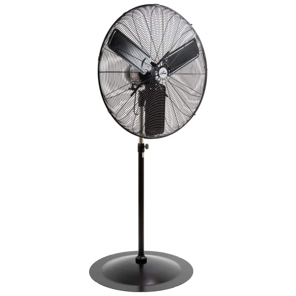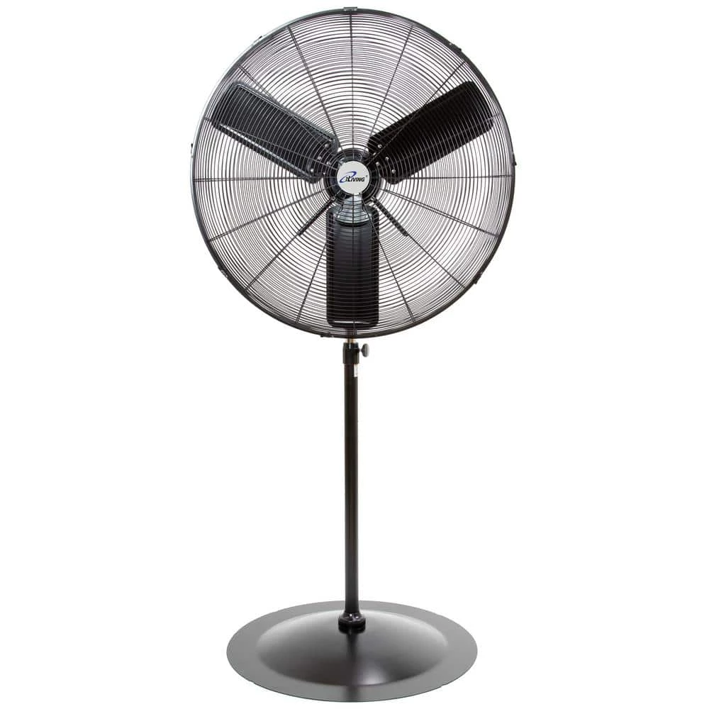 The iLIVING 30 in. indoor and outdoor oscillating pedestal fan is built with a totally enclosed ventilated 2-speed motor, with 1/3 HP. The aluminum fan blade are precisely balanced for optimal performance with minimum vibration. Pedestal fan is height adjustable from 54 in. – 65 in. H. This oscillating fan uses a 70° oscillating sweep, and allows fixed head positioning. The large pedestal base adds stability and safety. Fans come with 9.8 ft. GFCI type plug. Black powder coated zinc plated grille- UV resistant, rated for outdoor use. UL and cUL Listed. 1-year limited warranty.