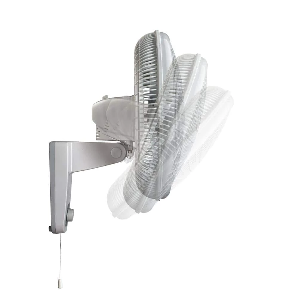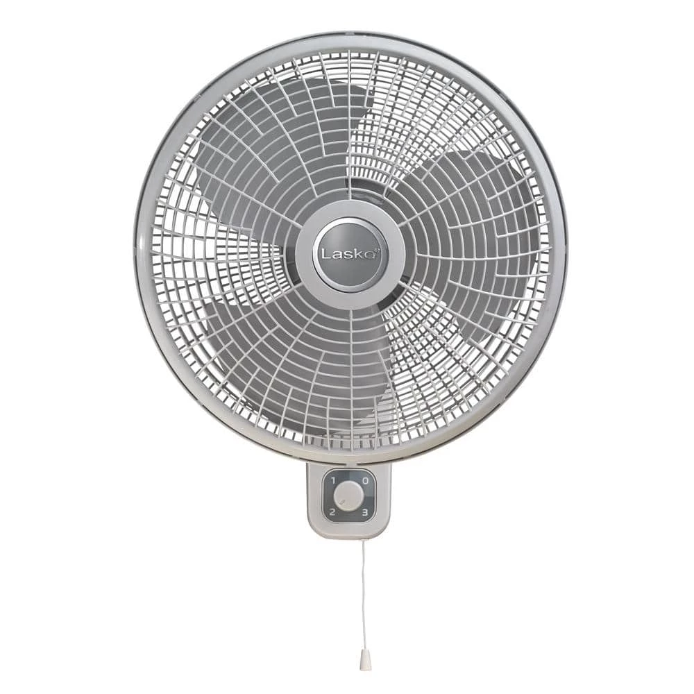 Feel fresh and cool with the Oscillating Wall-Mount Fan by Lasko. Perfect for kitchens, bedrooms, workshops or wherever table space is limited. The 16 in. fan’s manual controls include a dial and pull cord for convenience. Features widespread 90° oscillation with 3 speeds for customized airflow. High quality durable grills will not rust or corrode. Includes a rear cord storage area. Simple assembly required. 1-year limited warranty.