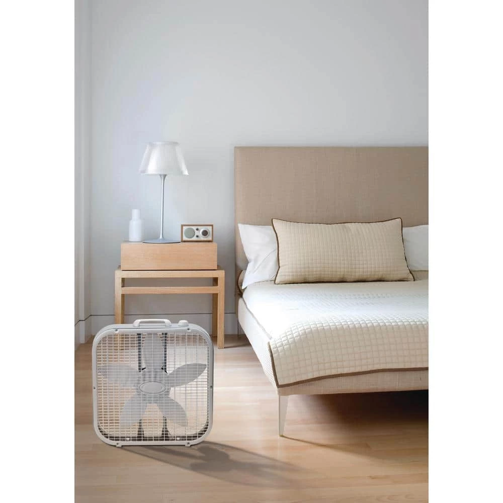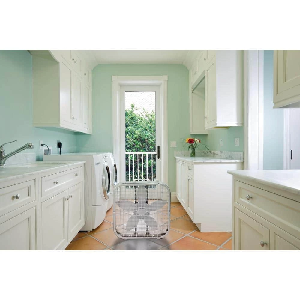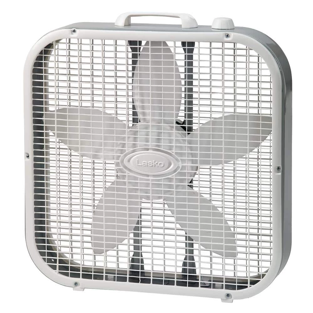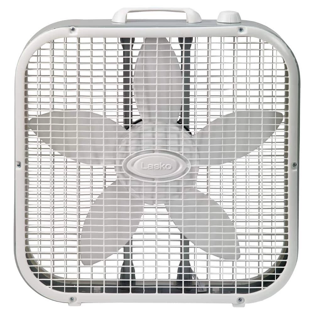 20 in. 3-Speed Box Fan combines the cooling power of 3 fan speeds with the wide-area air flow of 1820 CFM air circulation and a 20 in. fan diameter, all in a compact, lightweight, energy-efficient design. The 6 ft. cord and slip-resistant feet allow flexible placement without fan slippage and the built-in carry handle makes it easy to transport the fan between rooms. The plastic material provides reliable strength and durability.