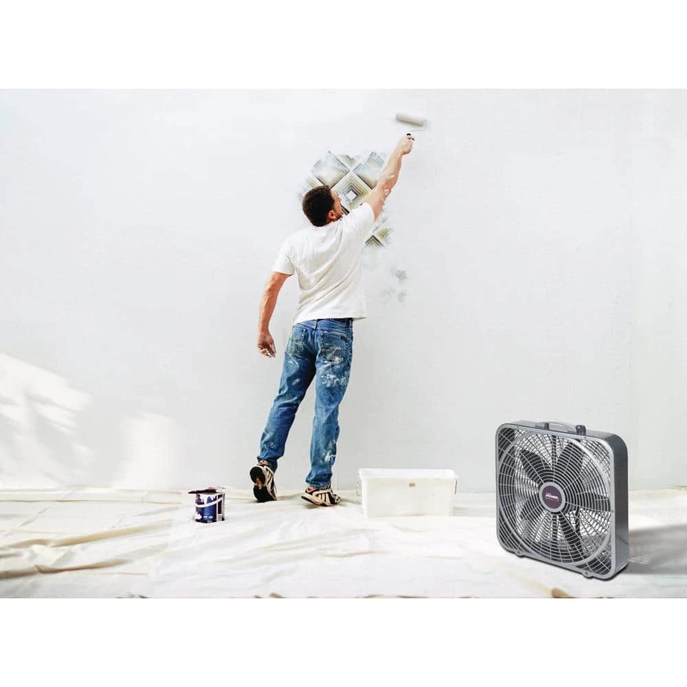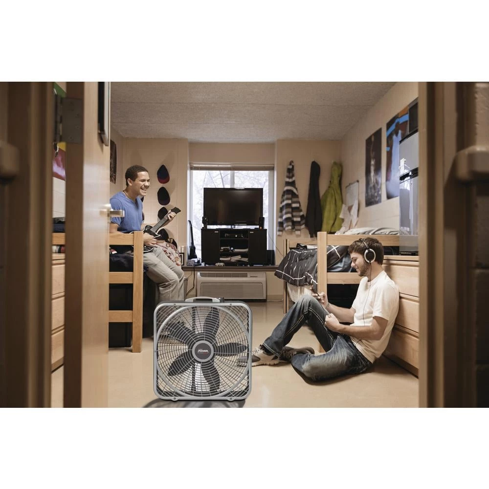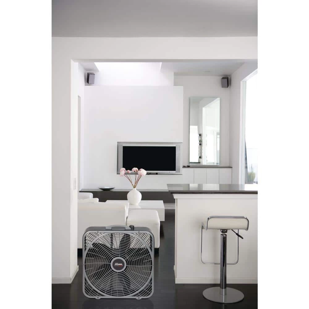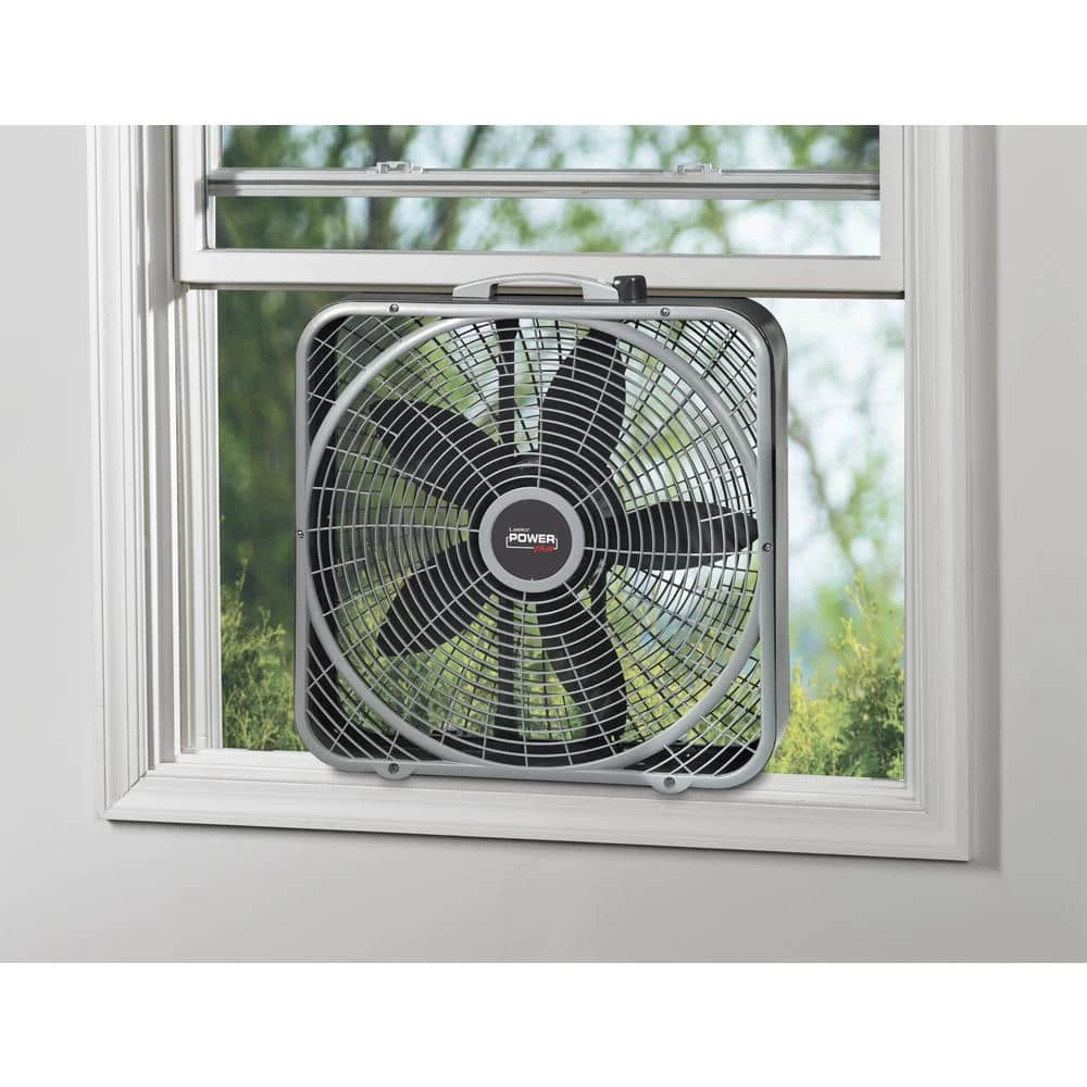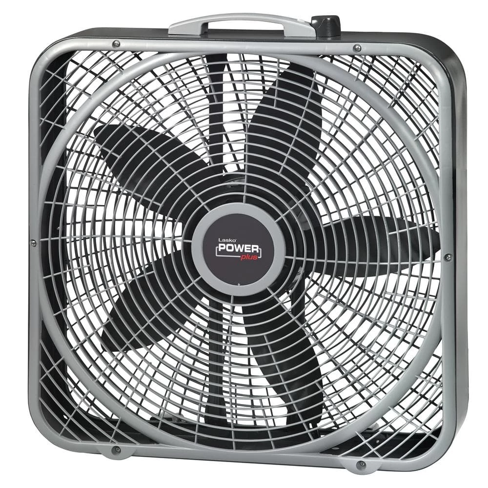 Outstanding air circulation with the Lasko Power Plus 20 in. 3-Speed Box Fan. The fan includes our innovative Wind Ring system for 20% more air velocity. The wider body allows for greater stability while the easy to carry handle makes portability a breeze. The patented Weather-Shield motor allows for easy free use in your window.