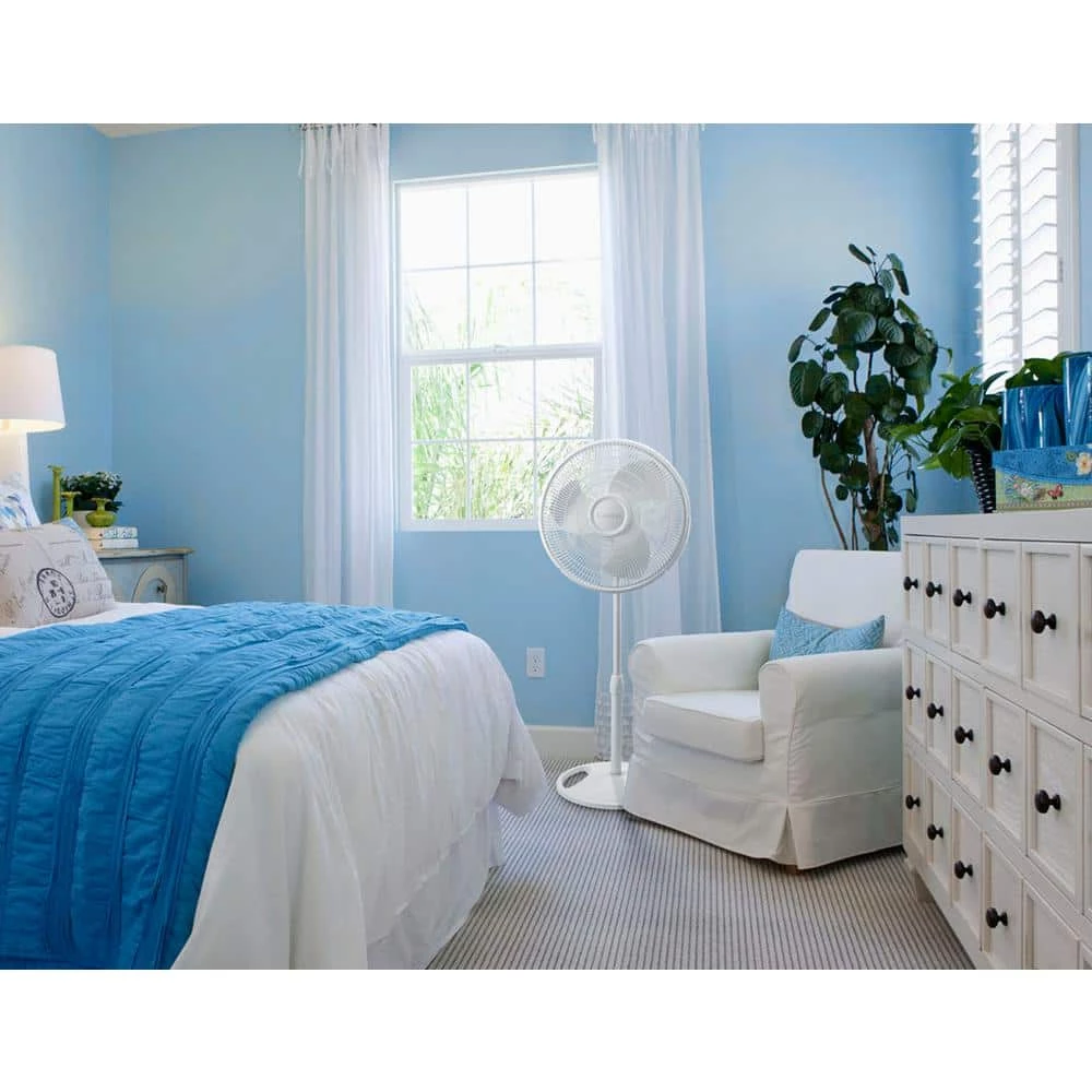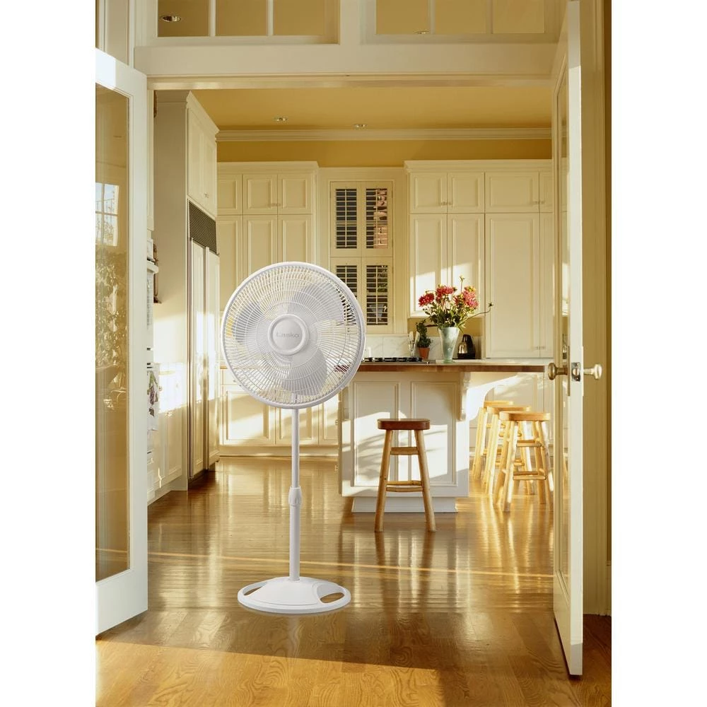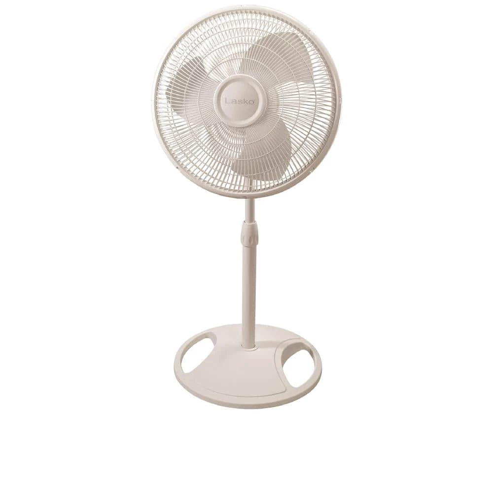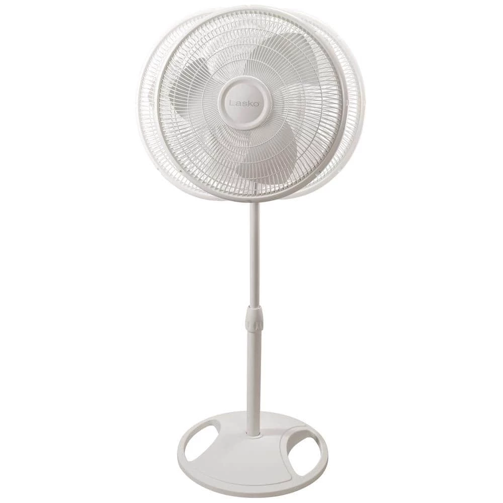 The Lasko 2520 is a 16 in. oscillating stand fan which produces high air output perfect for any room. With the broad 90 degree oscillation sweep this fan is sure to supply any room with the air flow you want from three quiet speeds. The easy grip rotary control makes it easy to adjust to the desired speed. The perfect height for any room in which high air flow is needed.