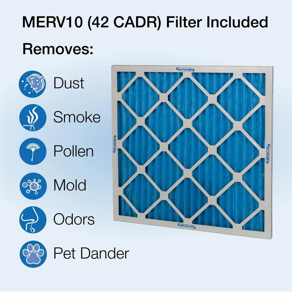 - Comes with MERV10/42 CADR pleated air filter