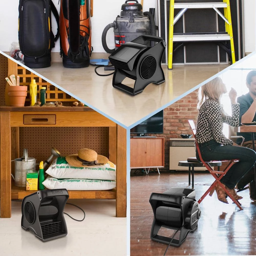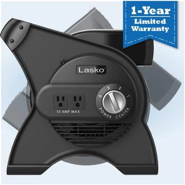 Lasko Pivoting Pro Blower Fan is a unique, multi-purpose, pivoting utility fan that is ideal for use in tight spaces where fresh air is essential, such as work spaces, attics, basements and garages. Packed with features to help at the worksite, it is equipped with a patented pivoting action allows you to direct the airflow right where you need it–from drying wet floors to exhausting the air from a newly-painted ceiling and anywhere in-between. Three high velocity speeds and a focused airstream bring powerful performance. Includes 2 additional outlets, a circuit breaker with reset, and a grounded plug for safety and convenience. Comes fully assembled. ETL listed.
