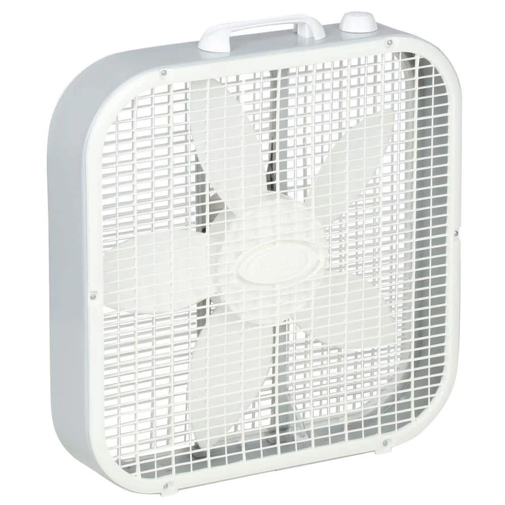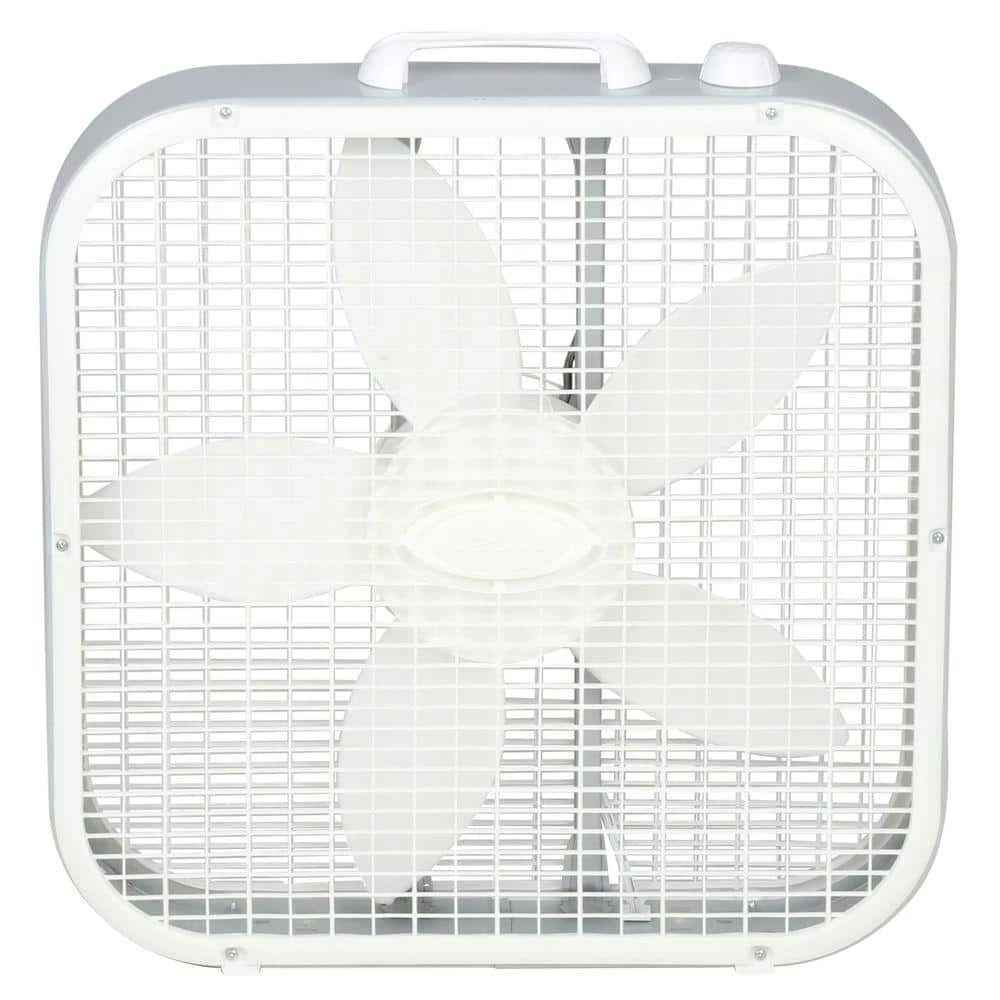 The Lasko 20 in. 3-Speed Box Fan combines the cooling power of 3 fan speeds with the wide-area air flow of 1820 CFM air circulation and a 20 in. fan diameter, all in a compact, lightweight, energy-efficient design. The 6 ft. cord and slip-resistant feet allow flexible placement without fan slippage and the built-in carry handle makes it easy to transport the fan between rooms. The plastic material provides reliable strength and durability. Great for bedrooms, living rooms, garages, or anywhere you need some additional airflow.