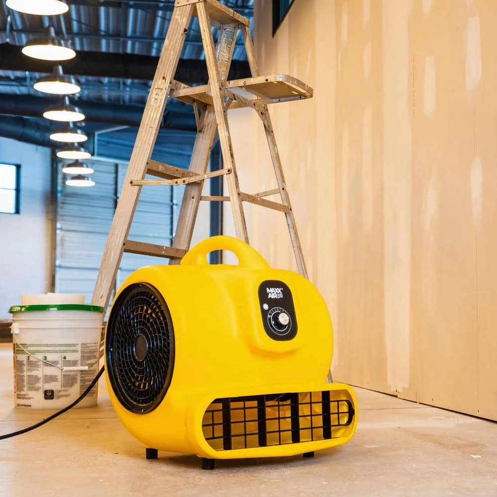 Reduce slip hazards and efficiently dry freshly-cleaned carpets and flooring in both commercial and residential spaces with the Maxx Air 3600 CFM 3-Speed High Velocity Floor Drying Fan. This carpet fan is constructed of durable injection molded yellow polypropylene, a 1 HP motor and a powerful blower that moves large volumes of air for faster dry times of flooring, freshly-painted walls and ceilings or drywall mud and tile grout and to quickly assist in the prevention of mildew in water-damaged areas. Easily transport this utility air mover with you using the balanced carry handle at the top of the unit, plug it in anywhere with the extra long 20 ft. power cord and store it away in a closet stacked up to 4 units high to save space between jobs. A wide air outlet allows for extended coverage over large drying areas and the fan can be angled in 3 different airflow positions for focusing on floors, walls or ceilings, making it the perfect choice for any service professional.