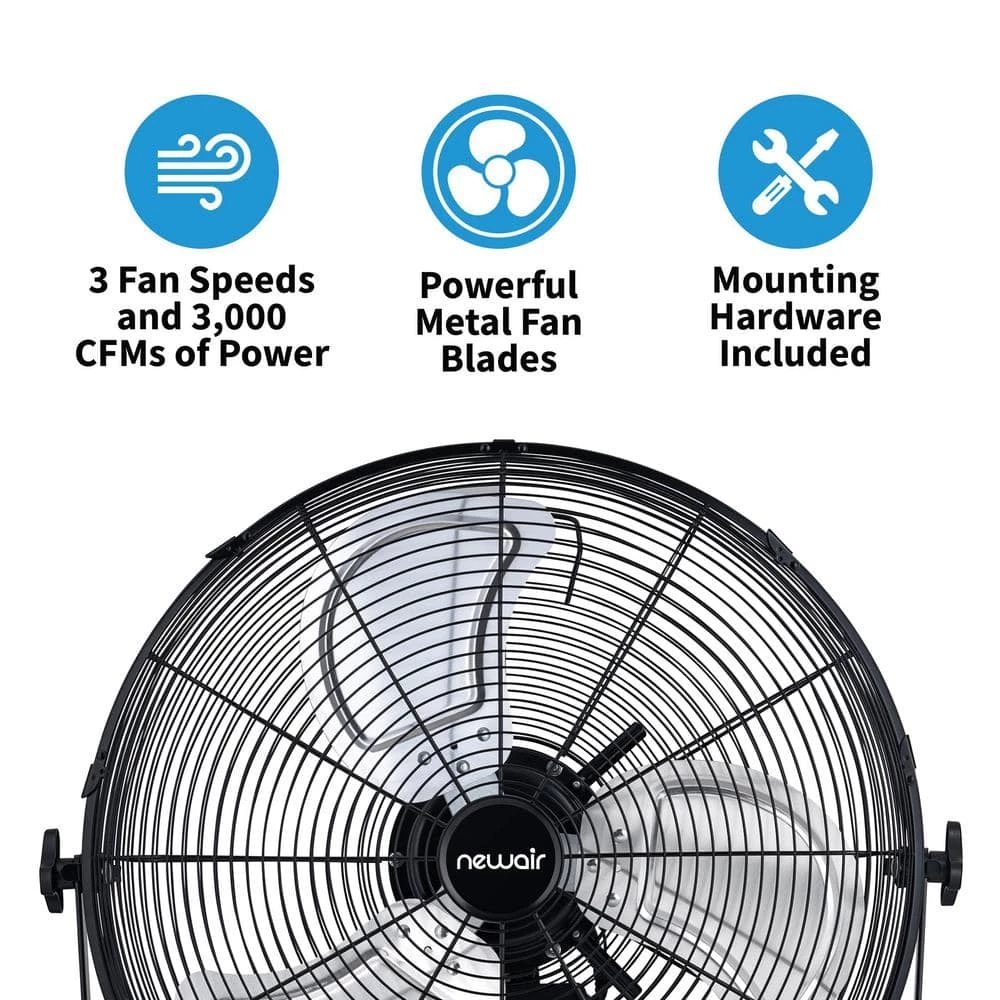 Cool off your work space with this portable high-velocity fan. It comes with a water-resistant IPX4 motor, making it great for your workshop, garage, or barn. Three fan speeds and an adjustable tilt head let you choose your air flow. You can mount this fan to a wall or set it up as a floor stand. Powder-coated steel construction makes it built to last.