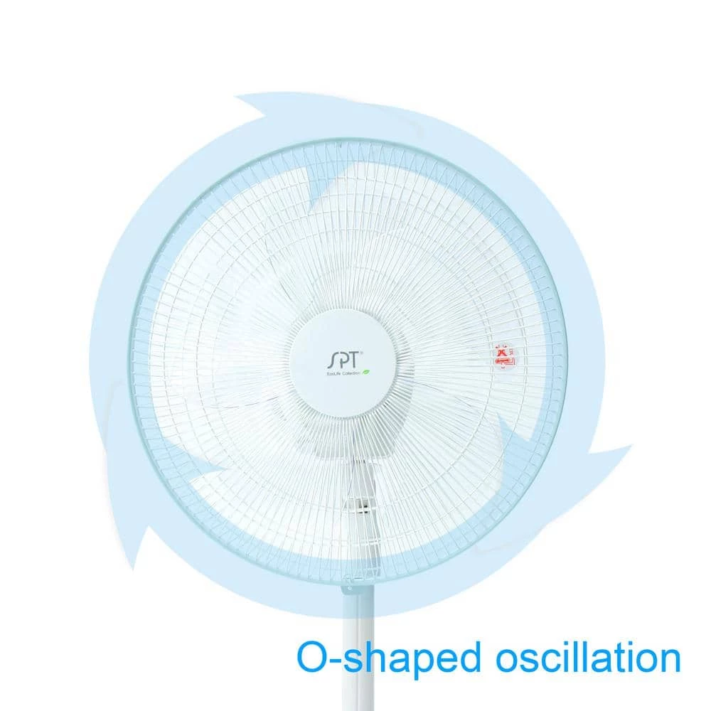 This modern and sleek 16 in. stand fan will deliver powerful air circulation to any space. The all copper high powered motor can deliver air up to a distance of 20 ft. The height can be adjusted to stand from 31 in. all the way to 39 in. The O-shaped oscillation mode provides an incredibly efficient way to circulate air to the desired room. With its beautiful design and functionality this fan will surely be a great addition to any room.