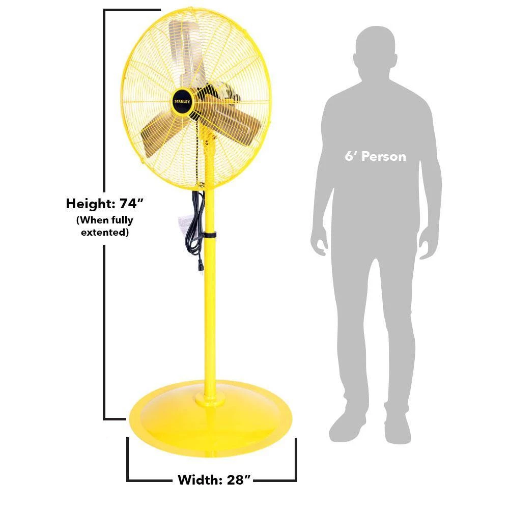 The Stanley 24 in. High Velocity Oscillating Pedestal Fan is ideal for many locations where the power of cooling is needed. From the home to the workshop, this fan is easy to use, powerful, and portable. With 3-speed settings, you decide how much airflow you need. The adjustable pedestal and oscillating head are perfect for getting the air right where you need it most.